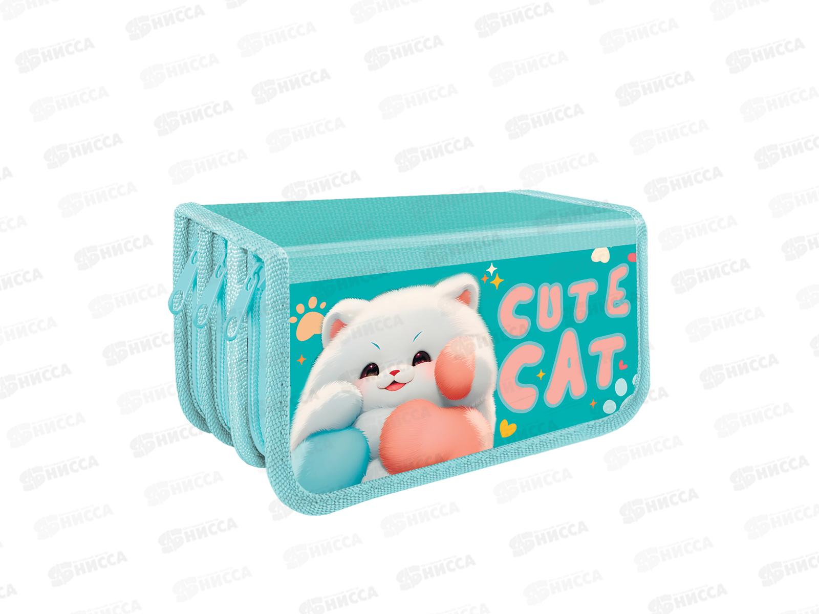 Пенал ПЧЕЛКА 3отд., Мягкий котик 2024 190*105, ПО-11 *15