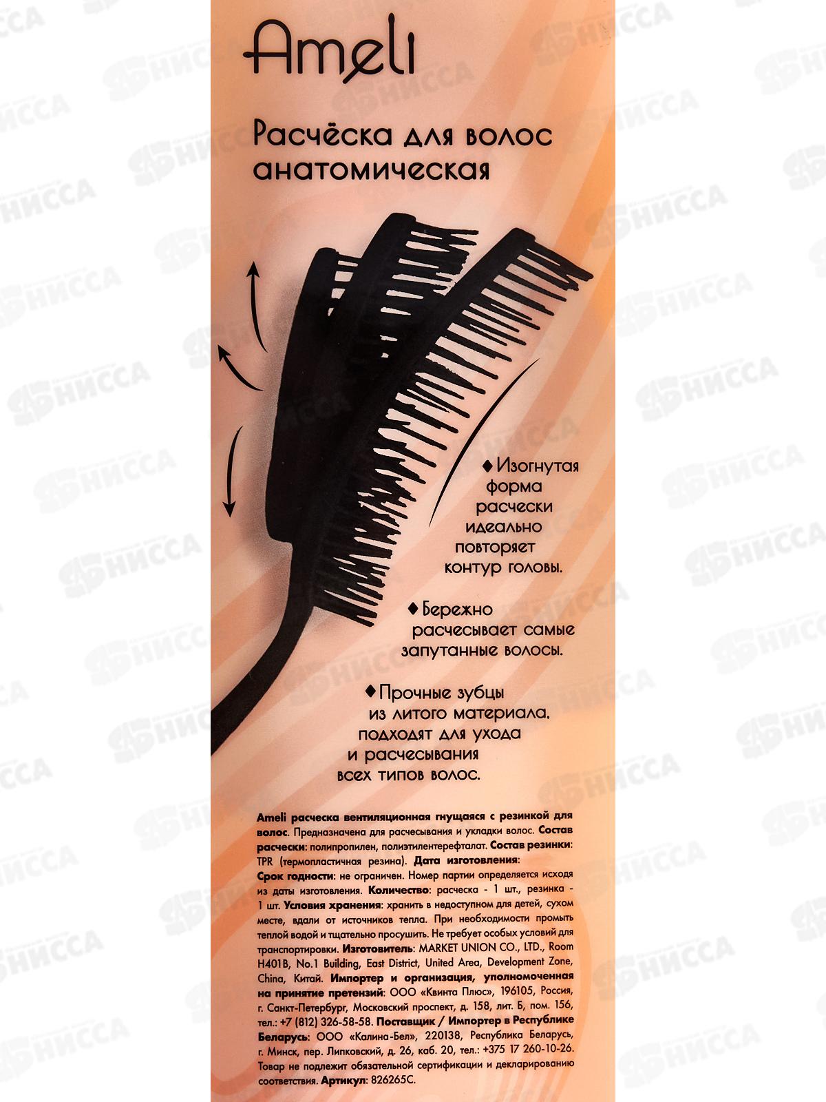Ameli Расческа Вент Гнущ с ручкой чер+резинк