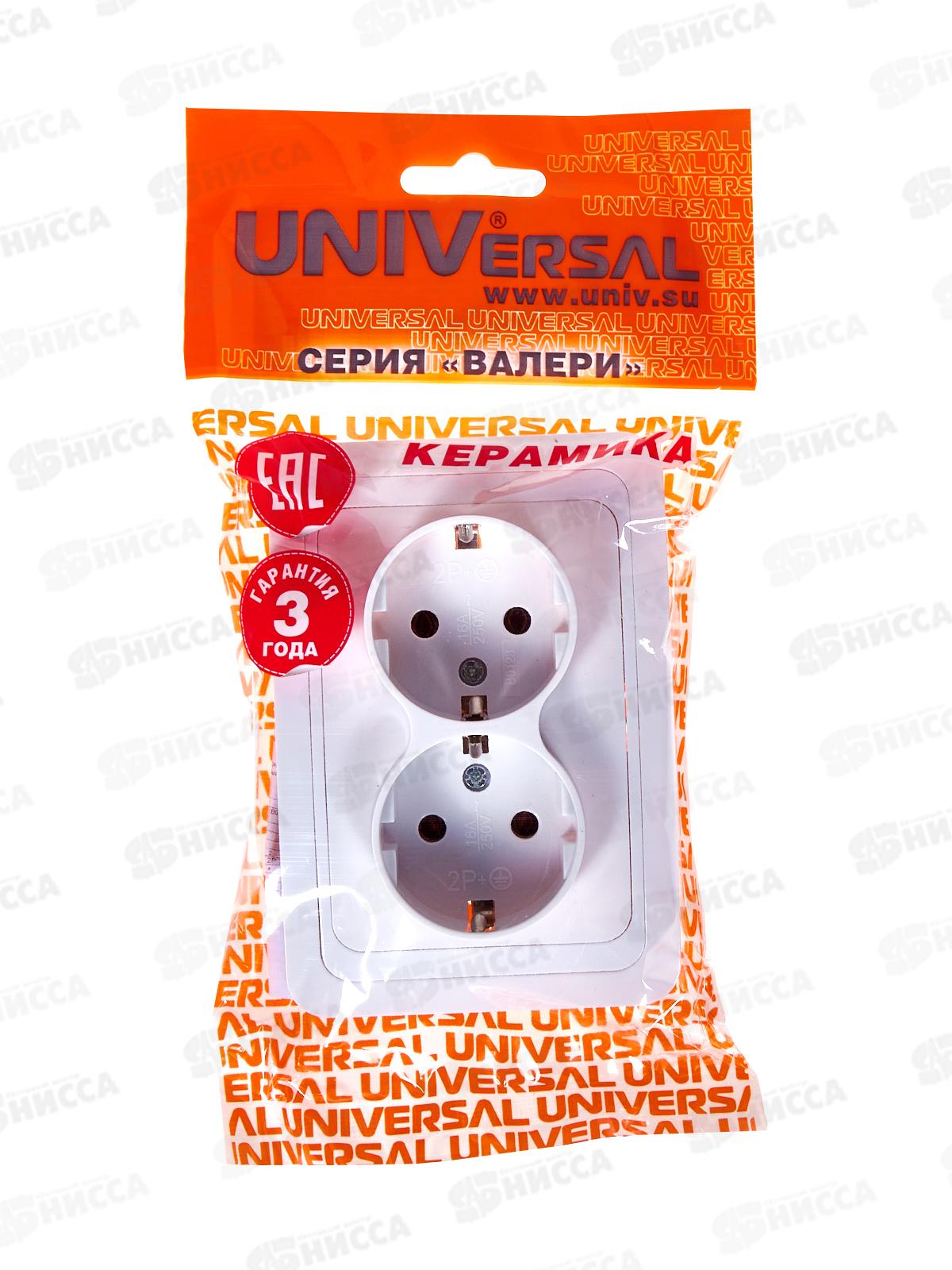 Розетка Валери 2-местная скрытой установки, с заземлением, 16А, 220В,белая, В0128*10