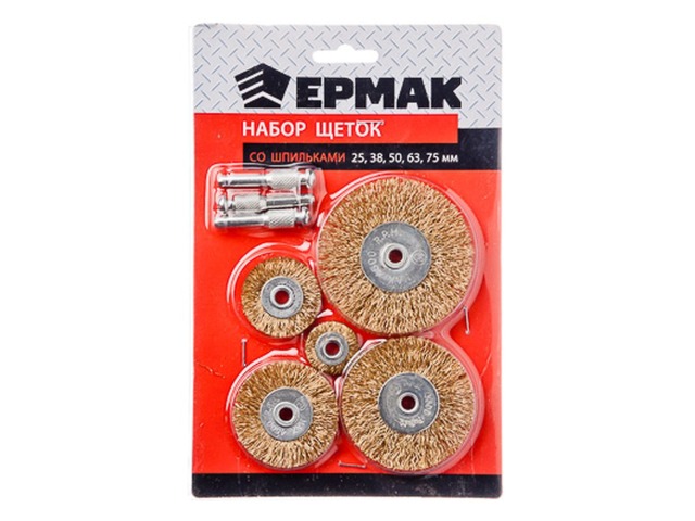 Набор щеток металлических со шпилькой 5предметов (25,38,50,63,75мм-плоские) ЕРМАК 656-034 г