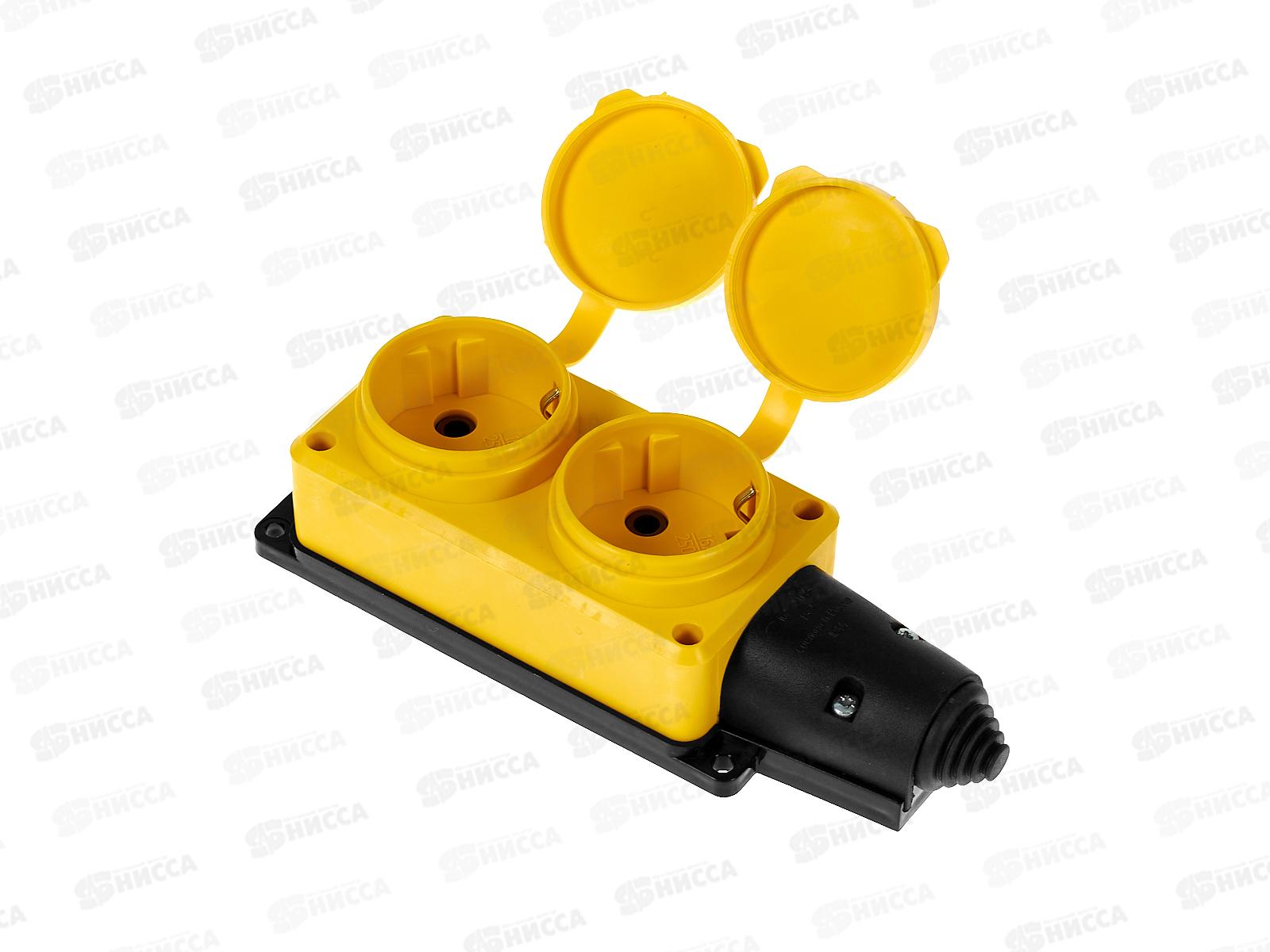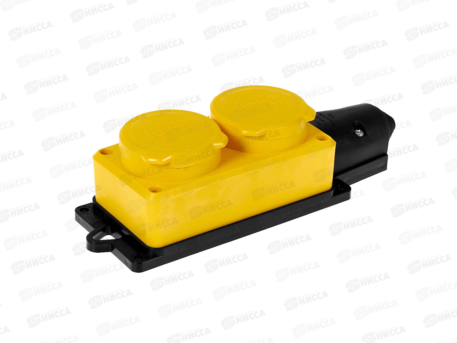 Колодка UNIVersal с заземлением 2 гнезда каучук, одноф. с заглуш., желтая, 3082