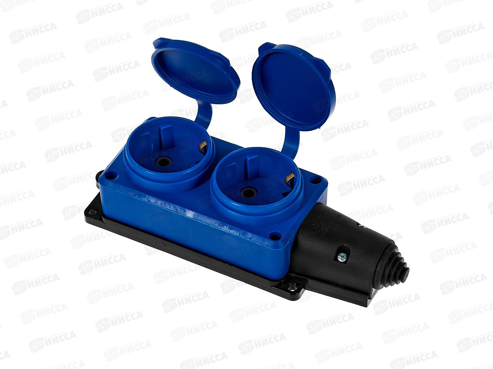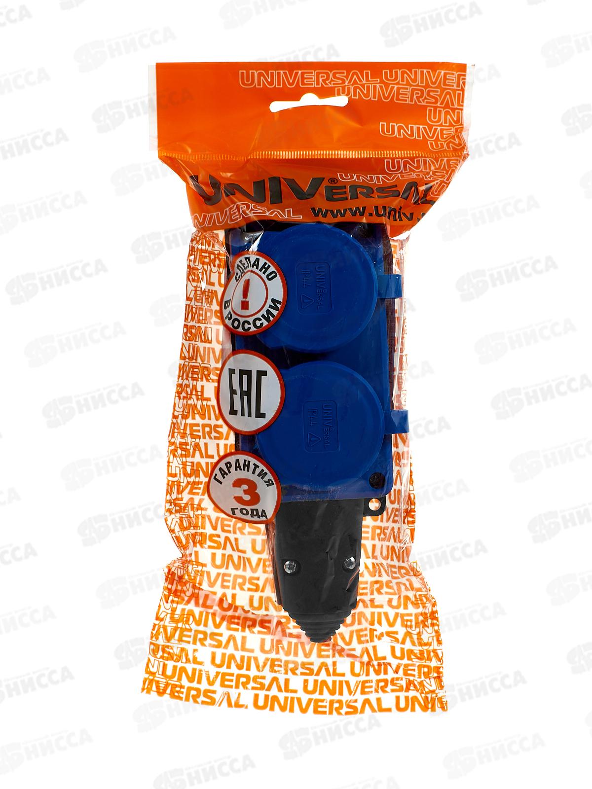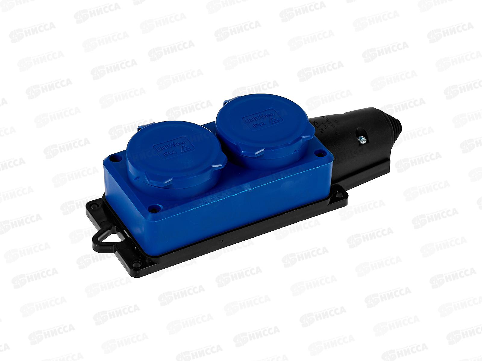 Колодка UNIVersal с заземлением 2 гнезда каучук, одноф. с заглуш., синяя, 3043