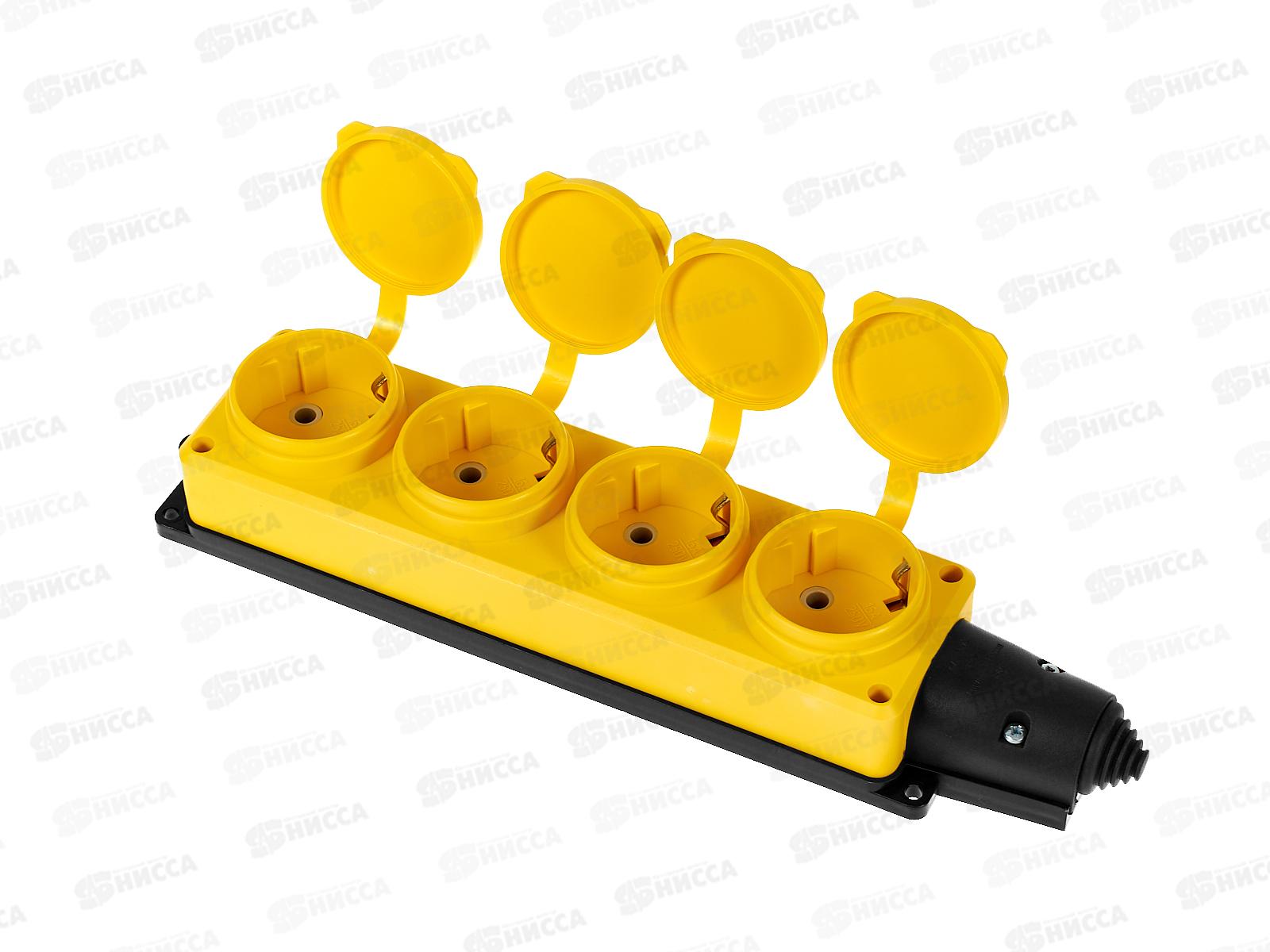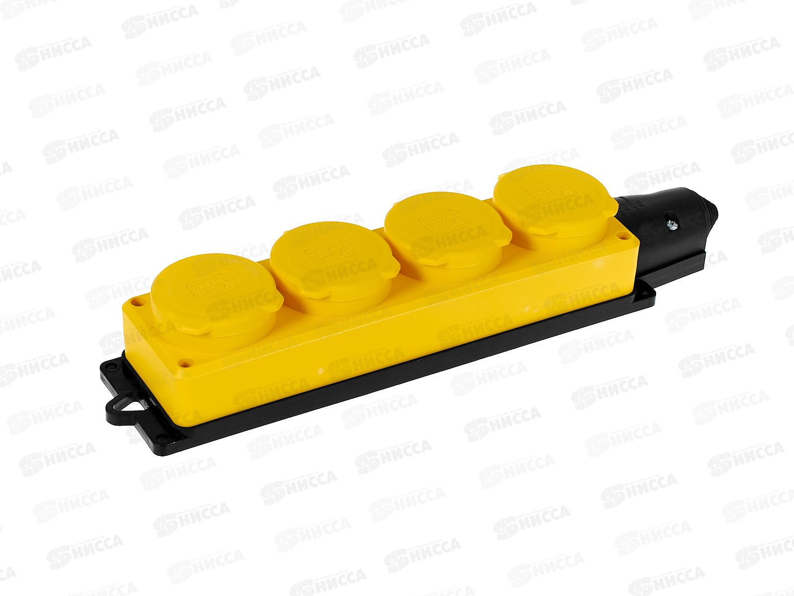 Колодка UNIVersal с заземлением 4 гнезда каучук, одноф. с заглуш., желтая, 3084