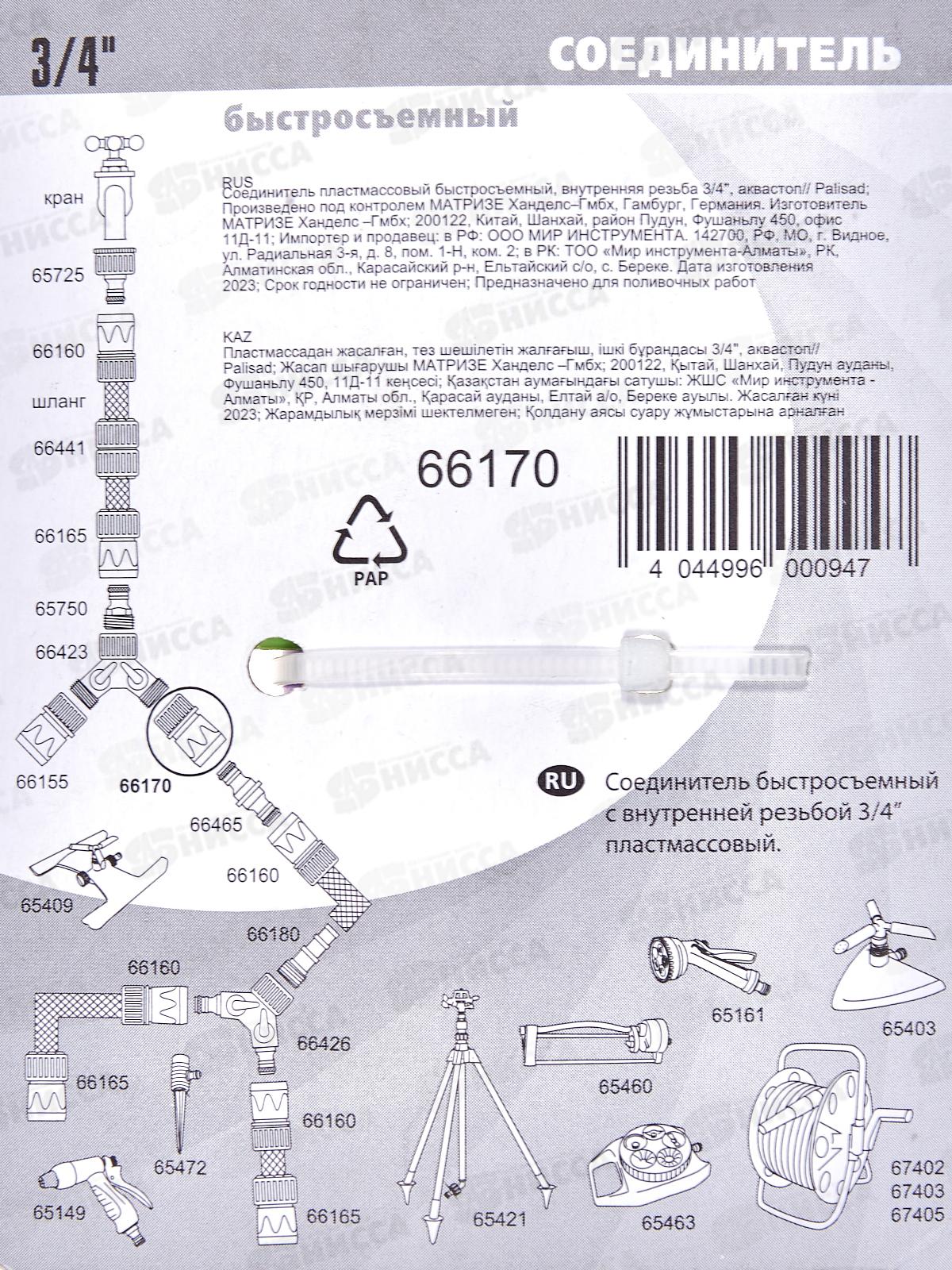 Соединитель пластм. быстросъемный внутренняя резьба 3/4" аквастоп/ Palisad, 66170*20
