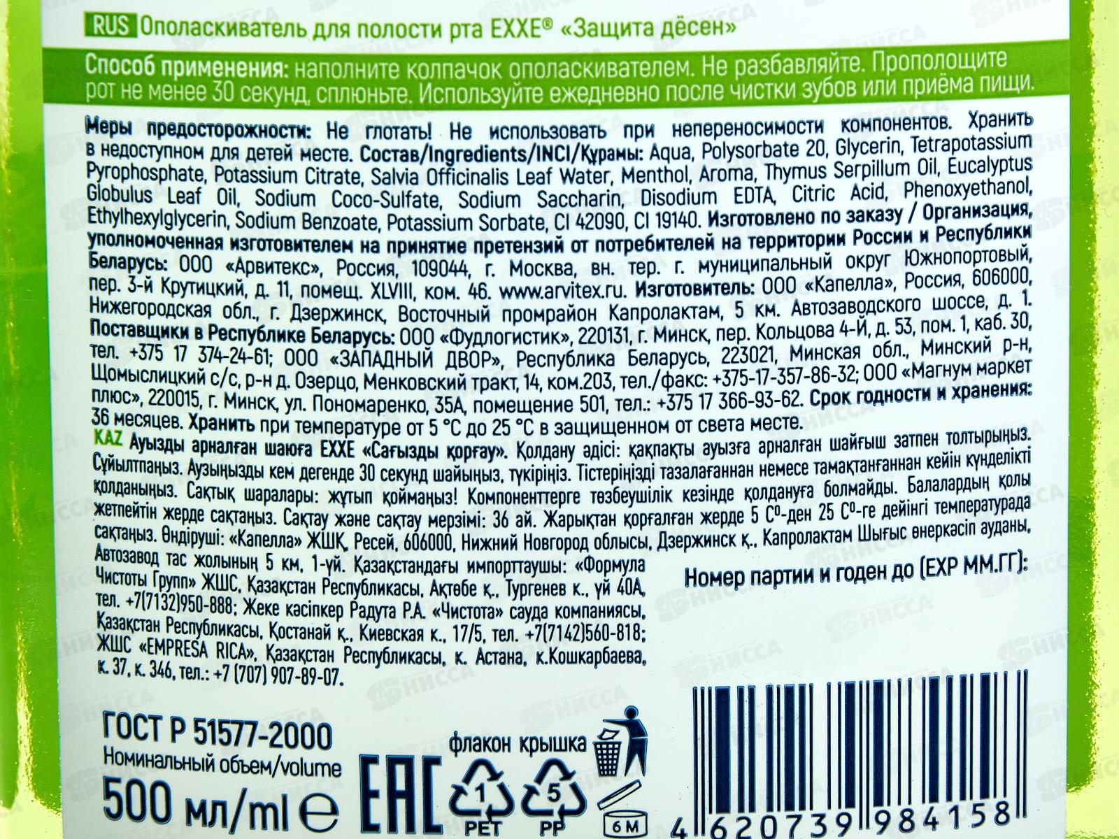 EXXE опол для рта Защита десен зеленый 500мл С0007956