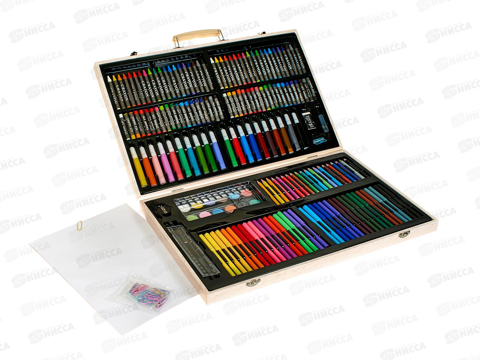 Комплектация: фломастеры, карандаши, восковые мелки, краски, скрепки, клей, линейка, точи
