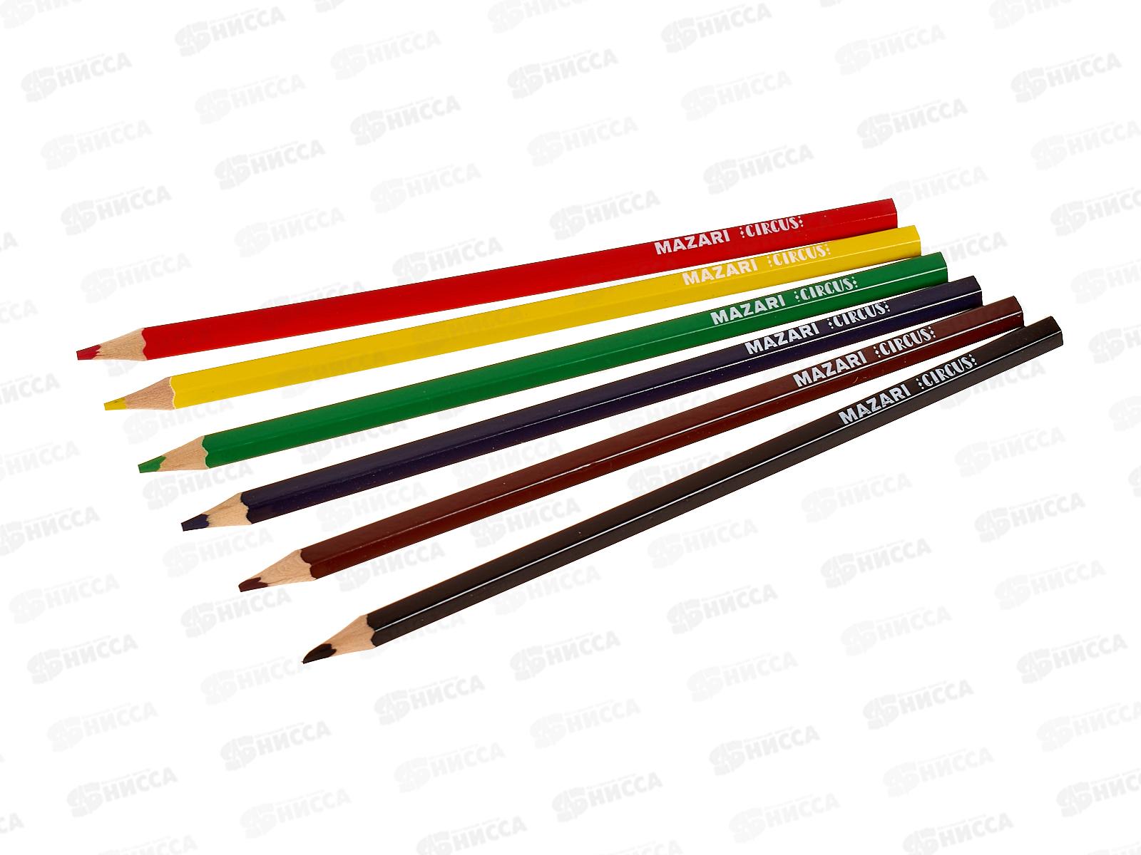 Карандаши 6цв MAZARI CIRCUS, дерев., шестигр., M-6187-6 *24
