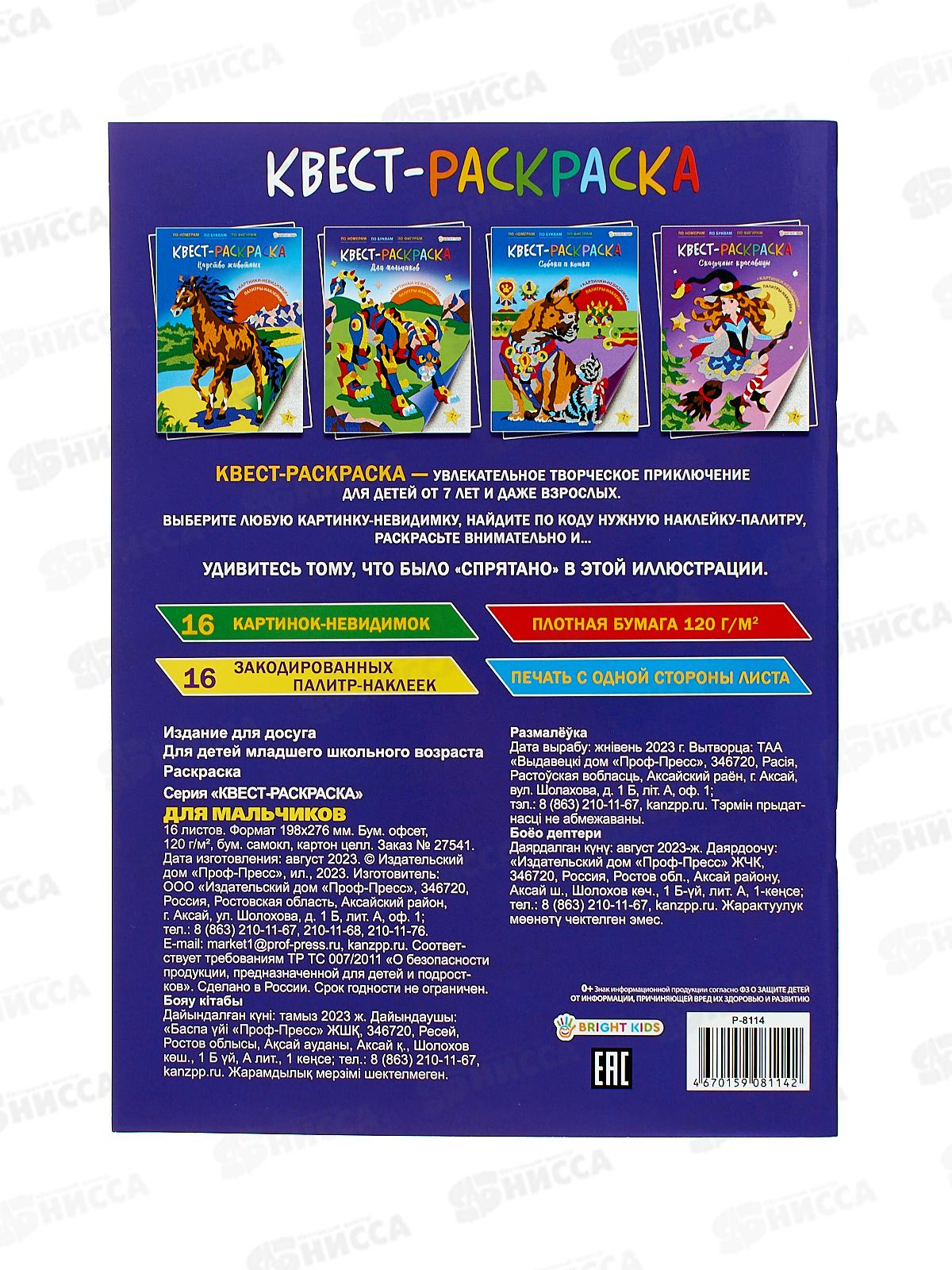 Раскраска ПП Для мальчиков, 16л+2л наклеек, 198х276, Р-8114 *30