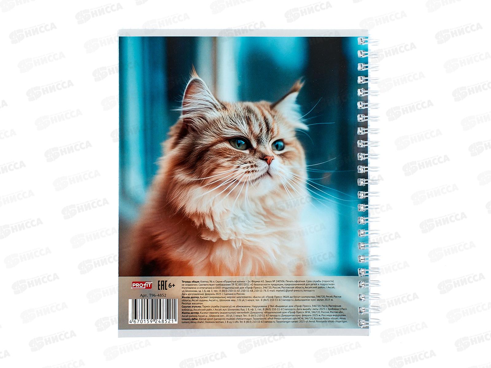 Тетрадь 96л клетка Profit Пушистые котики - 1, на гребне, Т96-4852 *6/48