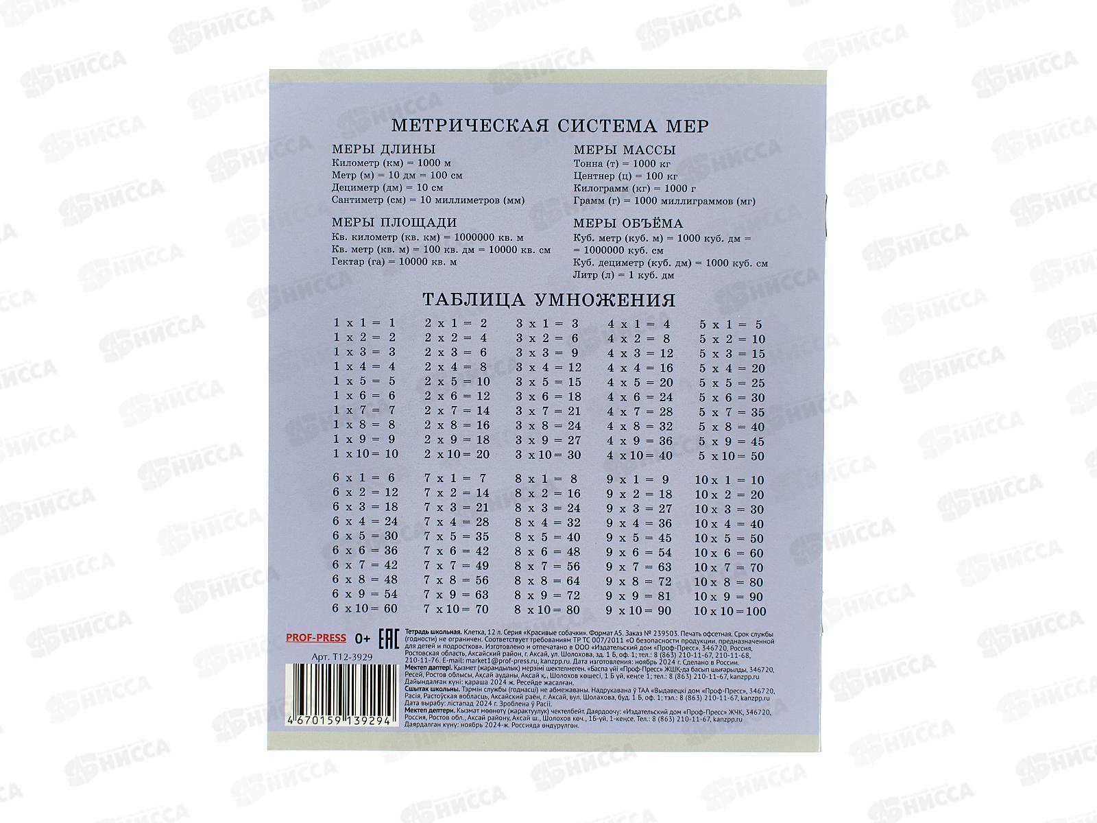 Дизайн задней обложки: таблица умножения, метрическая система мер