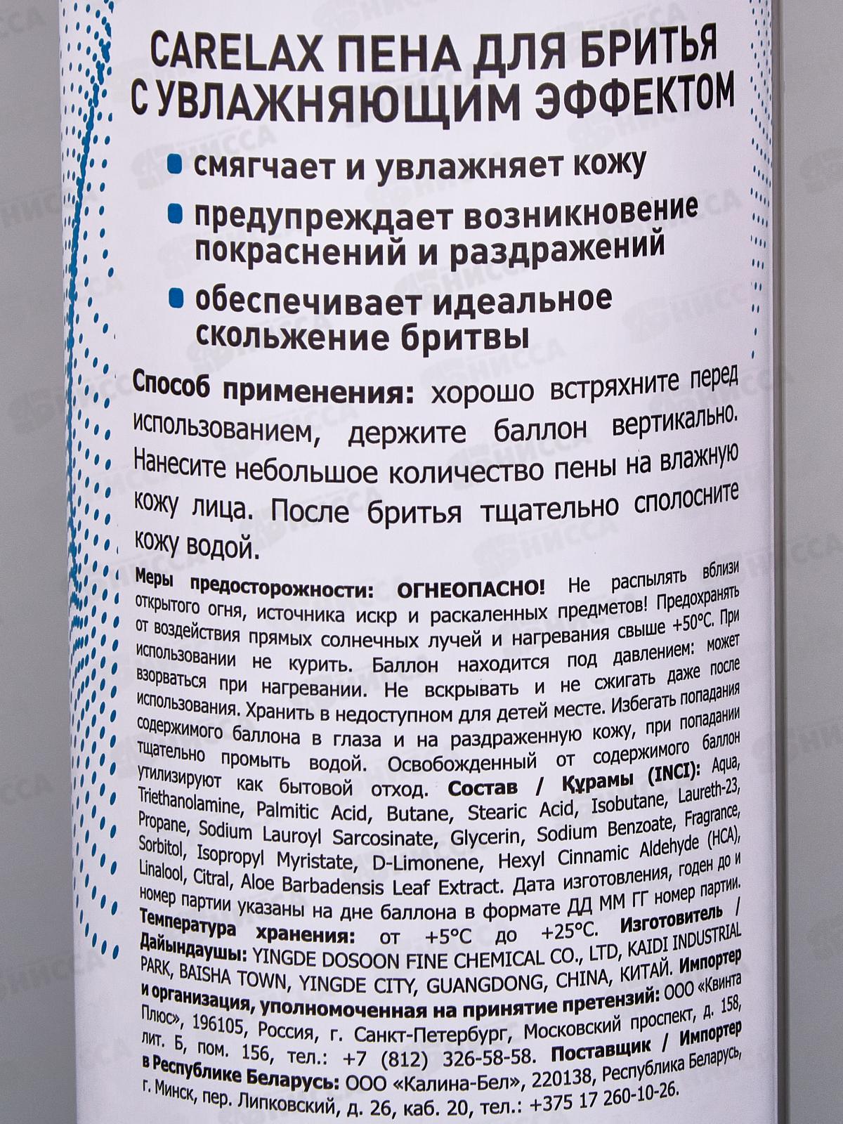 Carelax Пена для бритья Увлажняющим эффектом 200мл *12/24
