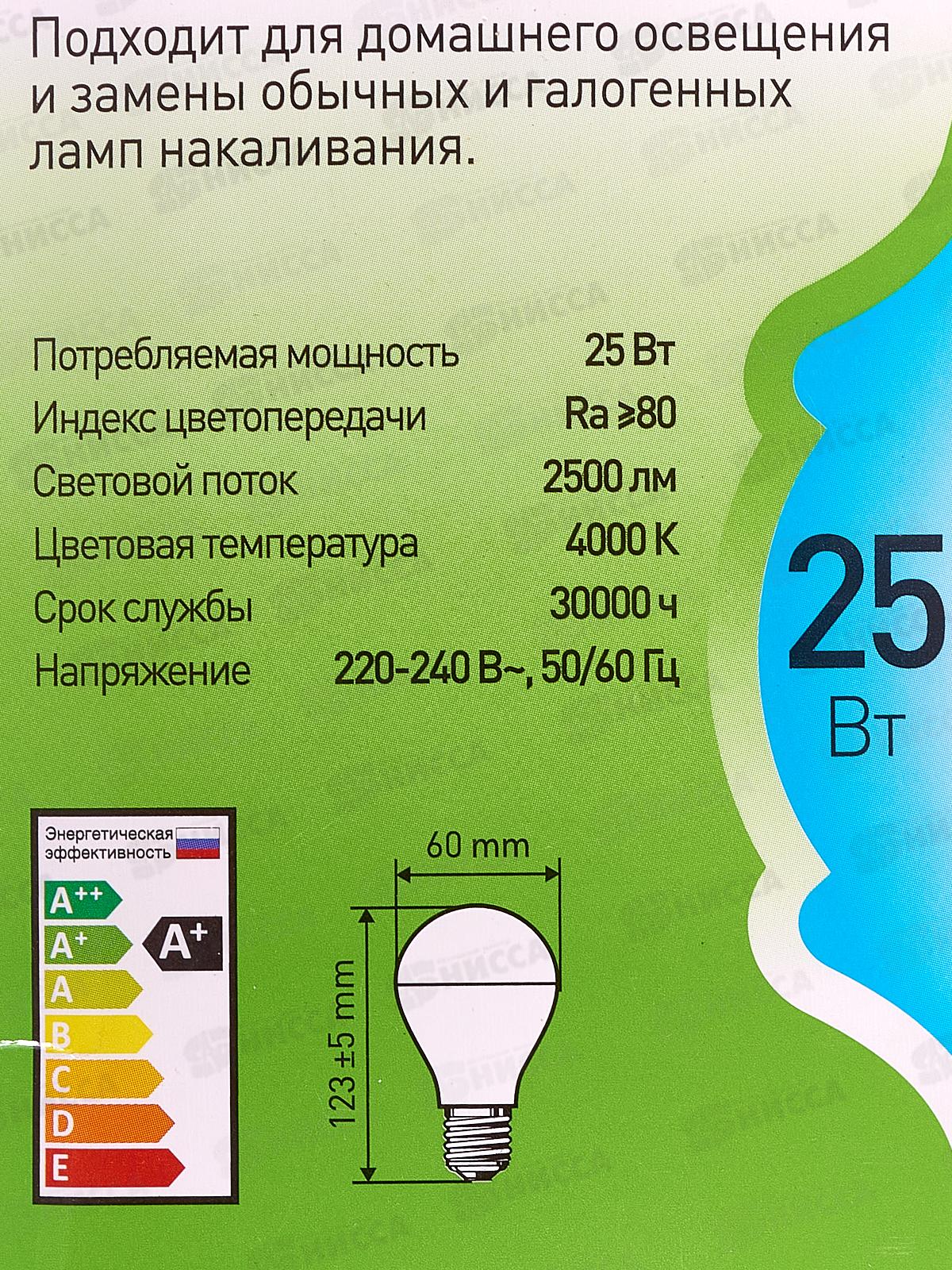 Лампа светодиодная ЭРА GREEN LINE LED 25Вт 4000К, A60-25W-840-E27 *10/100