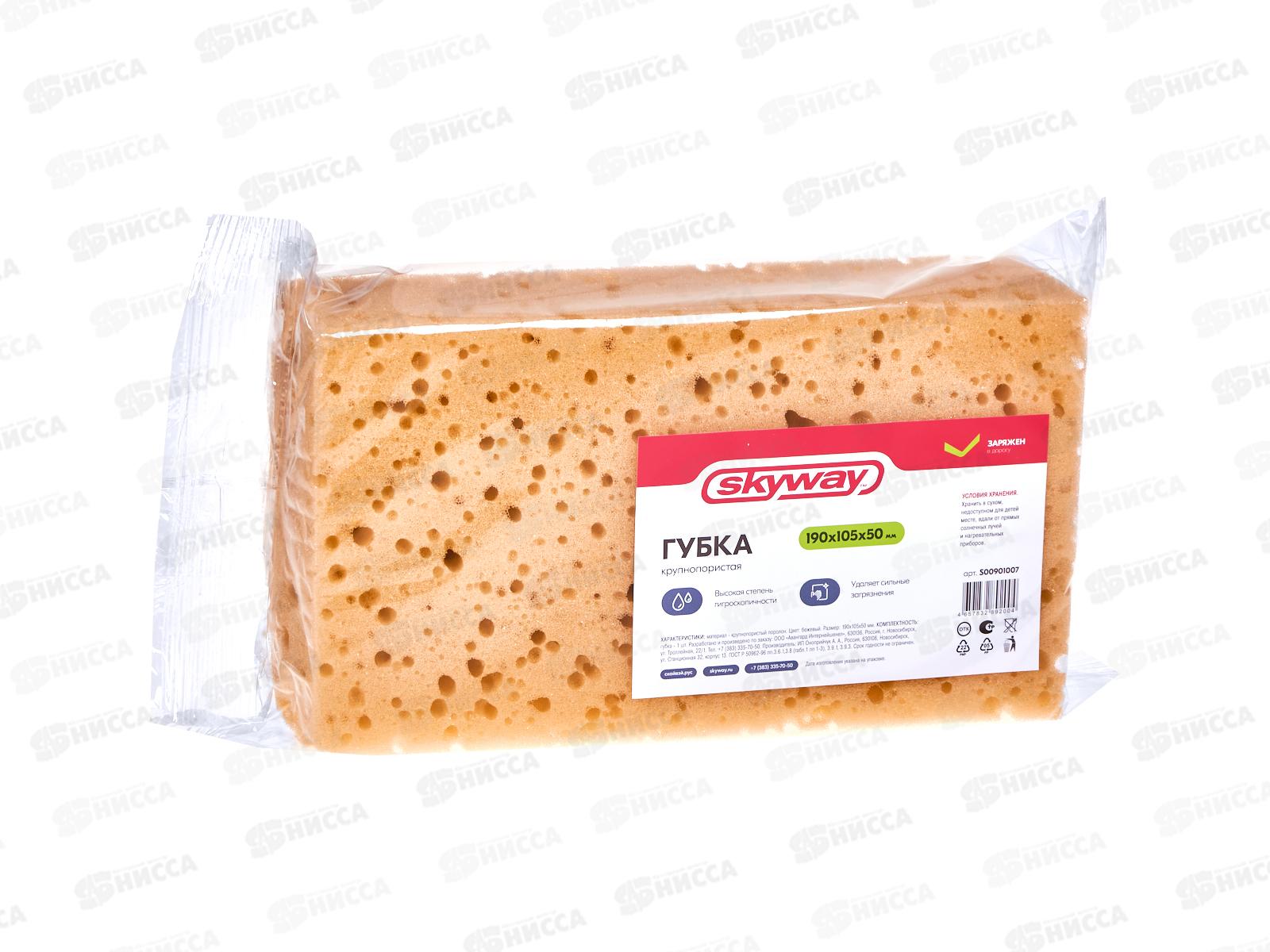 Губка поролоновая 19*10,5*5см SKYWAY крупнопористая Бежевая, S00901007 *32
