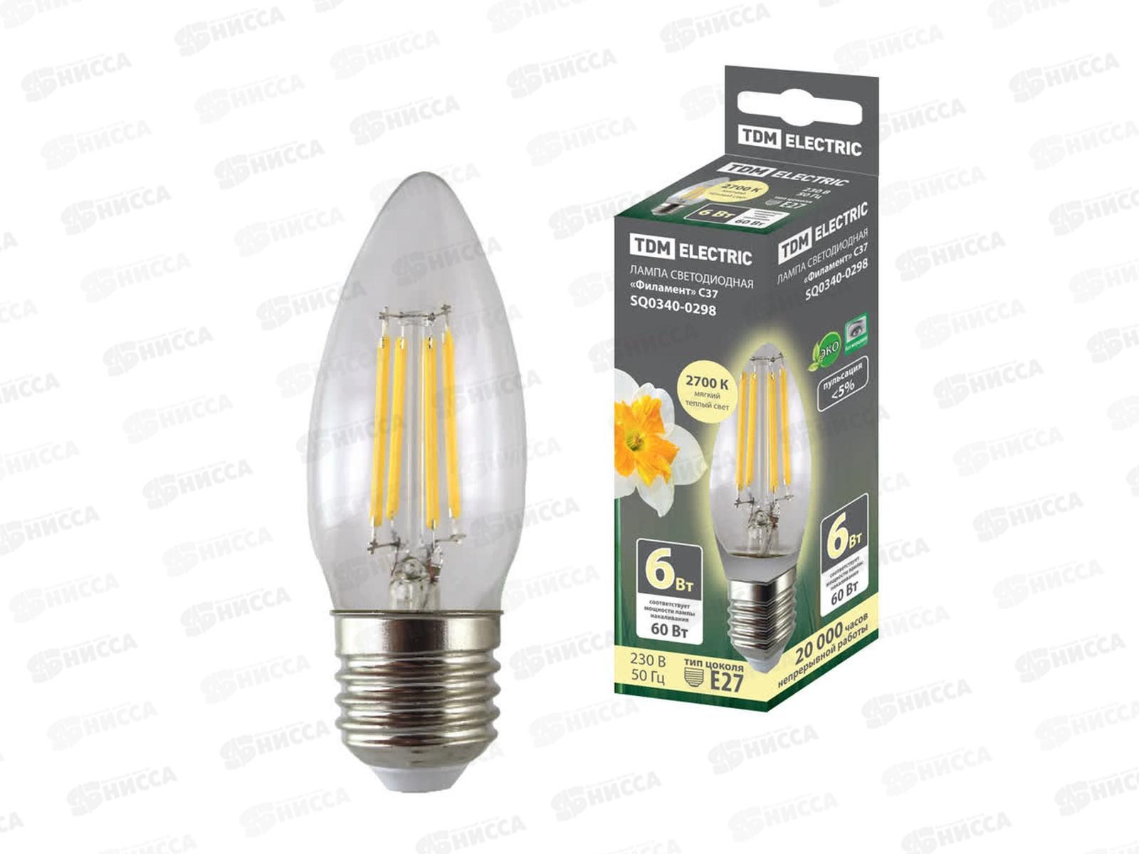 Лампа светодиодная TDM С37-6 Вт-230 В-2700 К–E27 Филамент TDM, 0298 *10/100