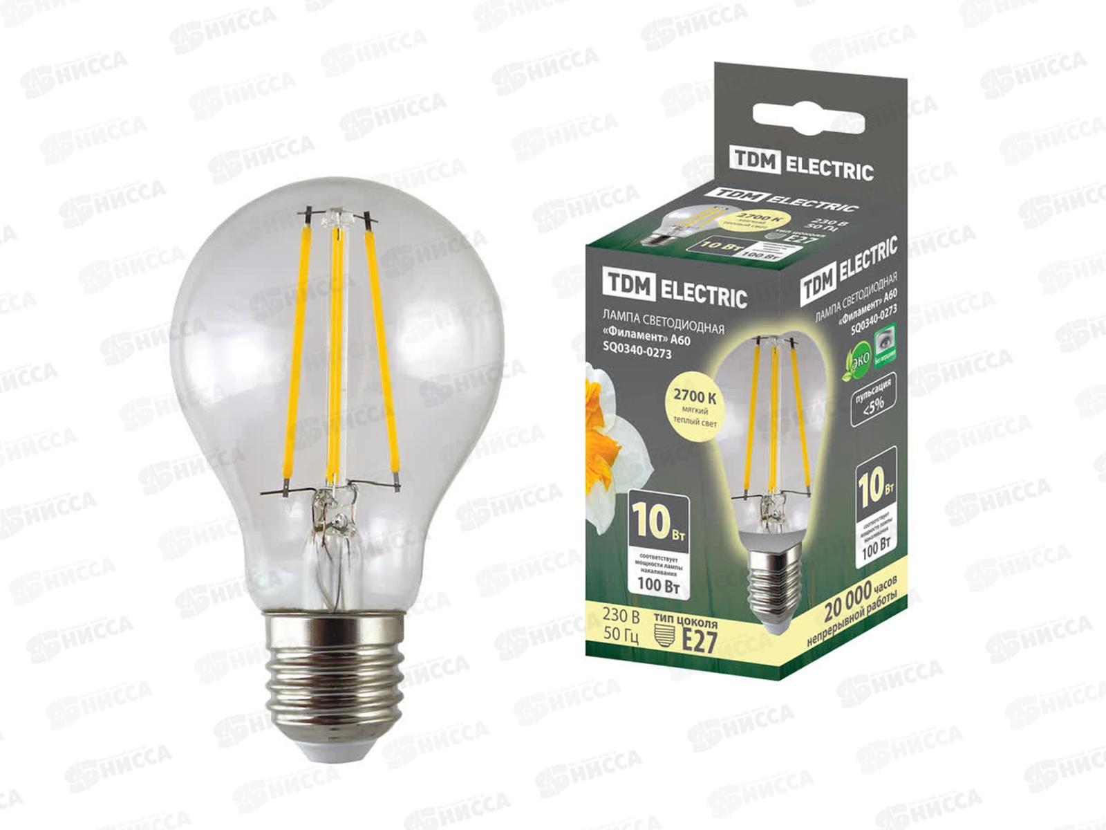 Лампа светодиодная TDM А60-10 Вт-230 В-2700 К–E27 Филамент TDM, 0273 *10/50