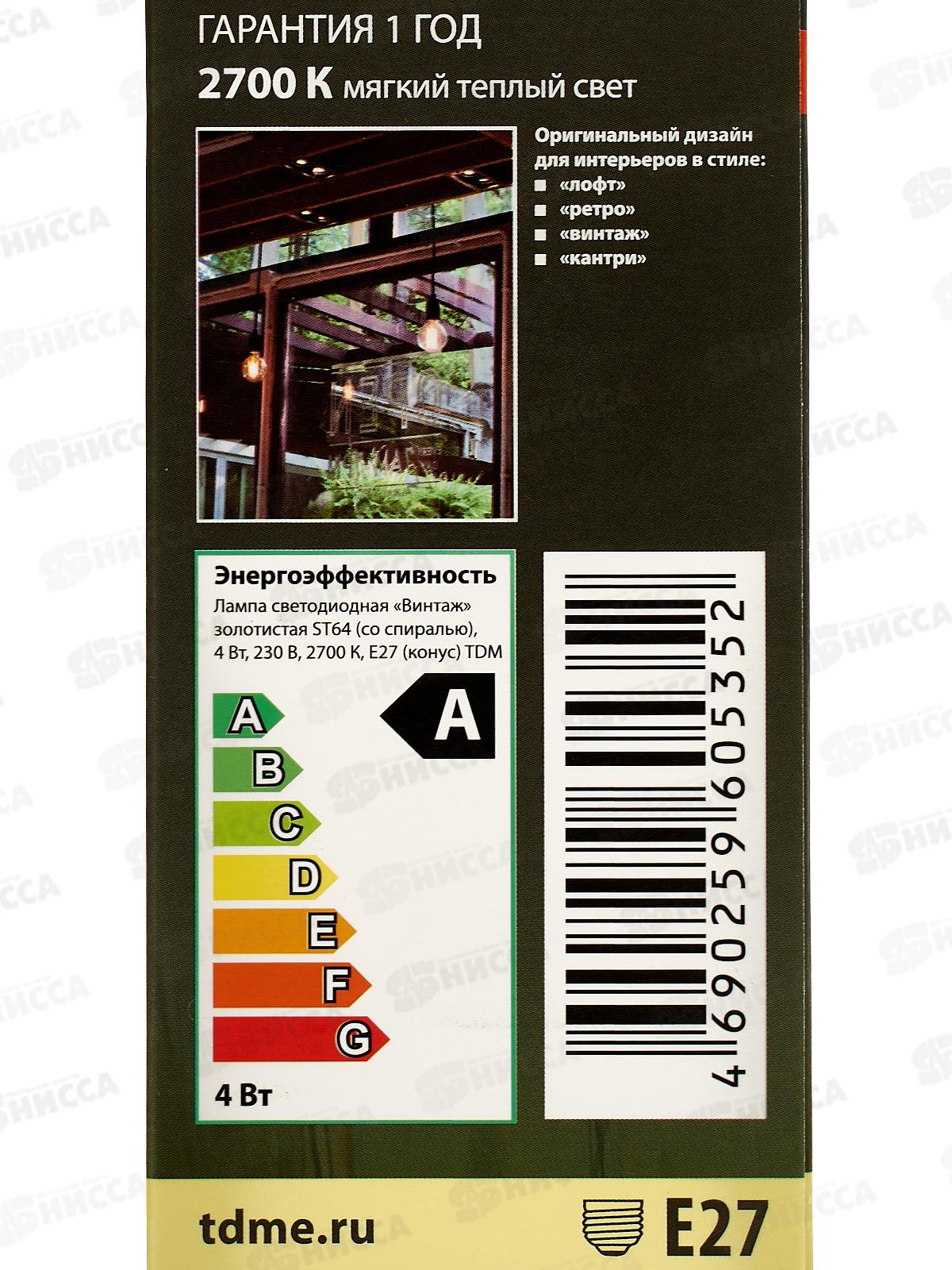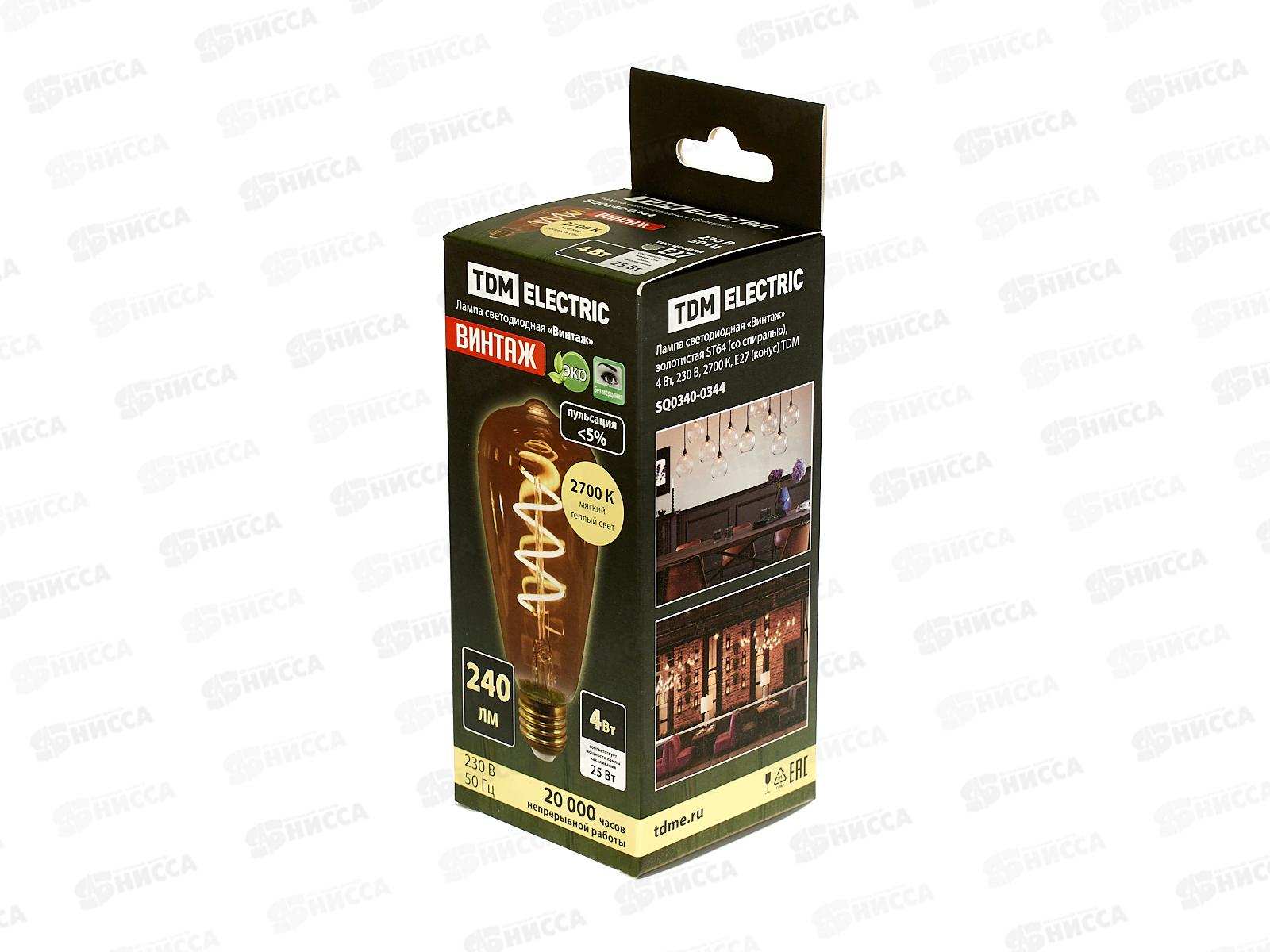 Лампа светодиодная "Винтаж" золотистая ST64 (со спиралью), 4Вт *100