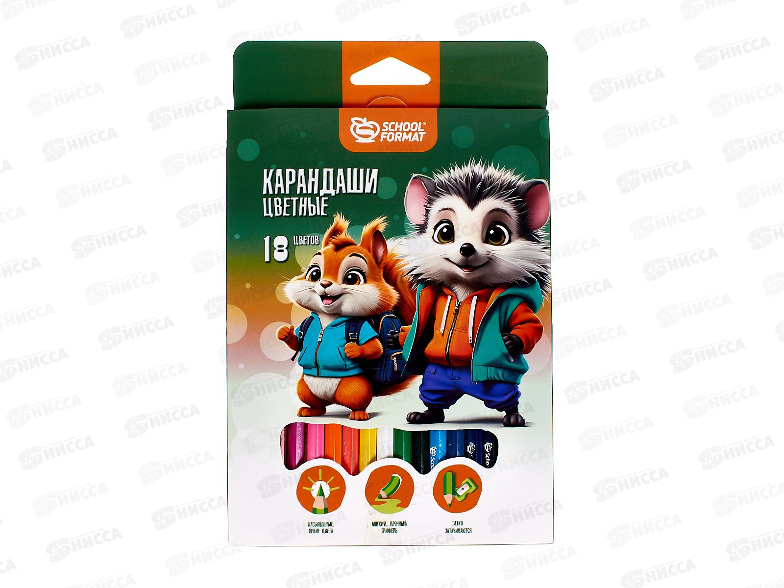 Карандаши 18цв SchoolФОРМАТ Яркие зверята шестигр.дер. КЦ18-ЯЗВ*8