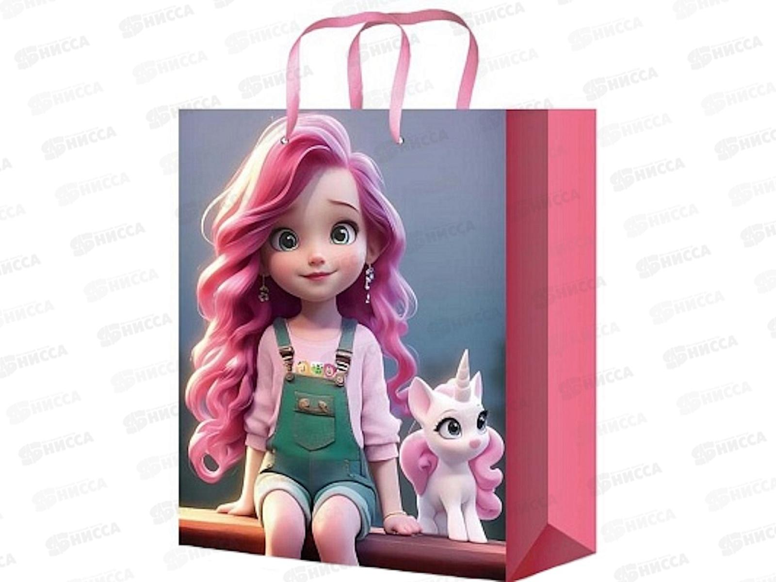 Пакет подарочный MI 26,4х32,7х8см Розоволос.девочка с единорогом, ПКП-0367 *12