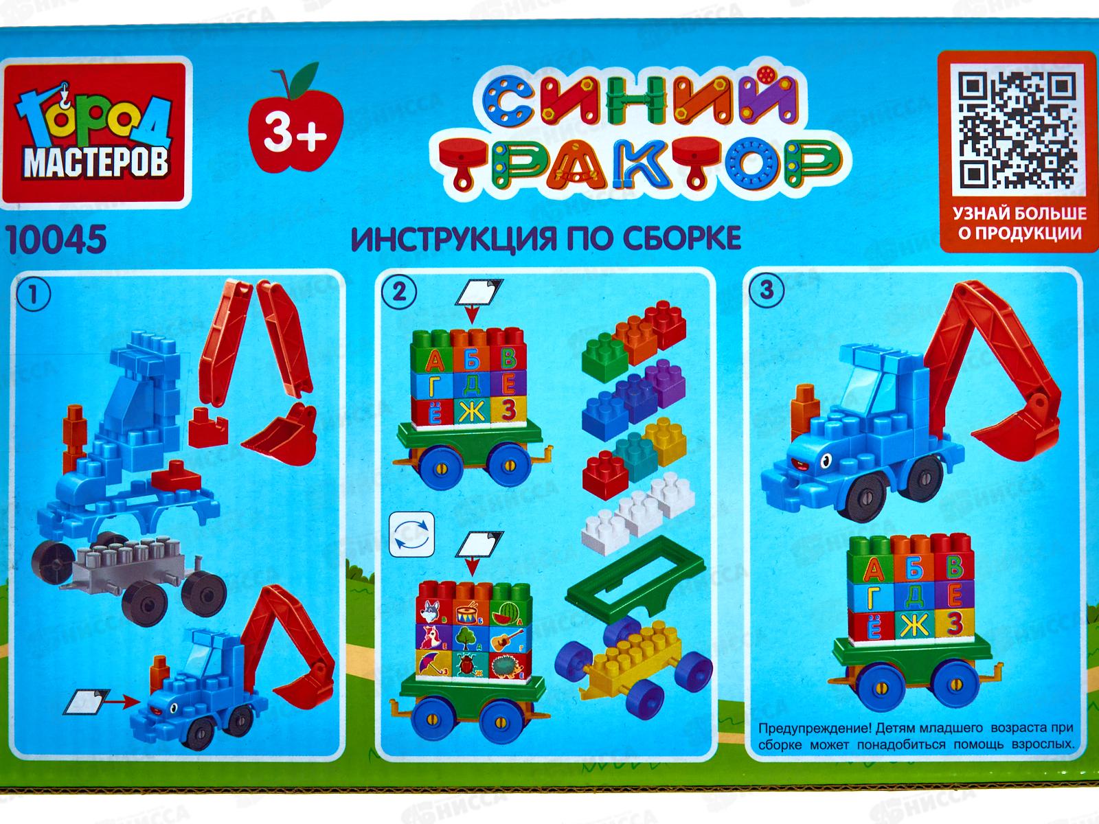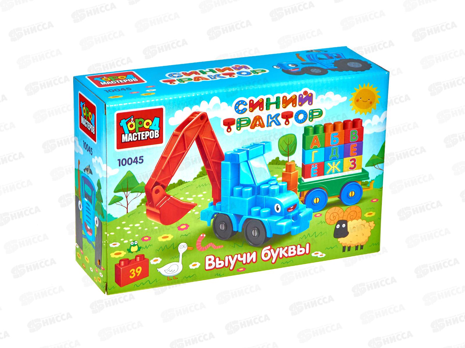 Конструктор "ГОРОД МАСТ" Синий трактор+тележка с буквами, 39дет. 10045-ВА