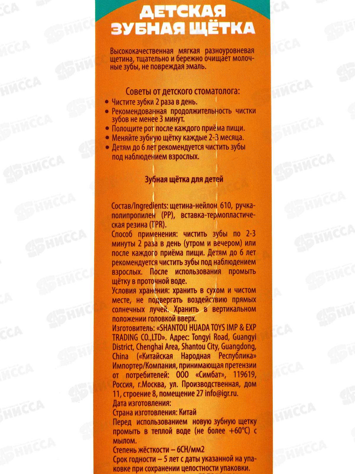 Зубная щетка УМКА MASTER DENT фигурная для детей Чебурашка оранжевая,121863-СНВ*12