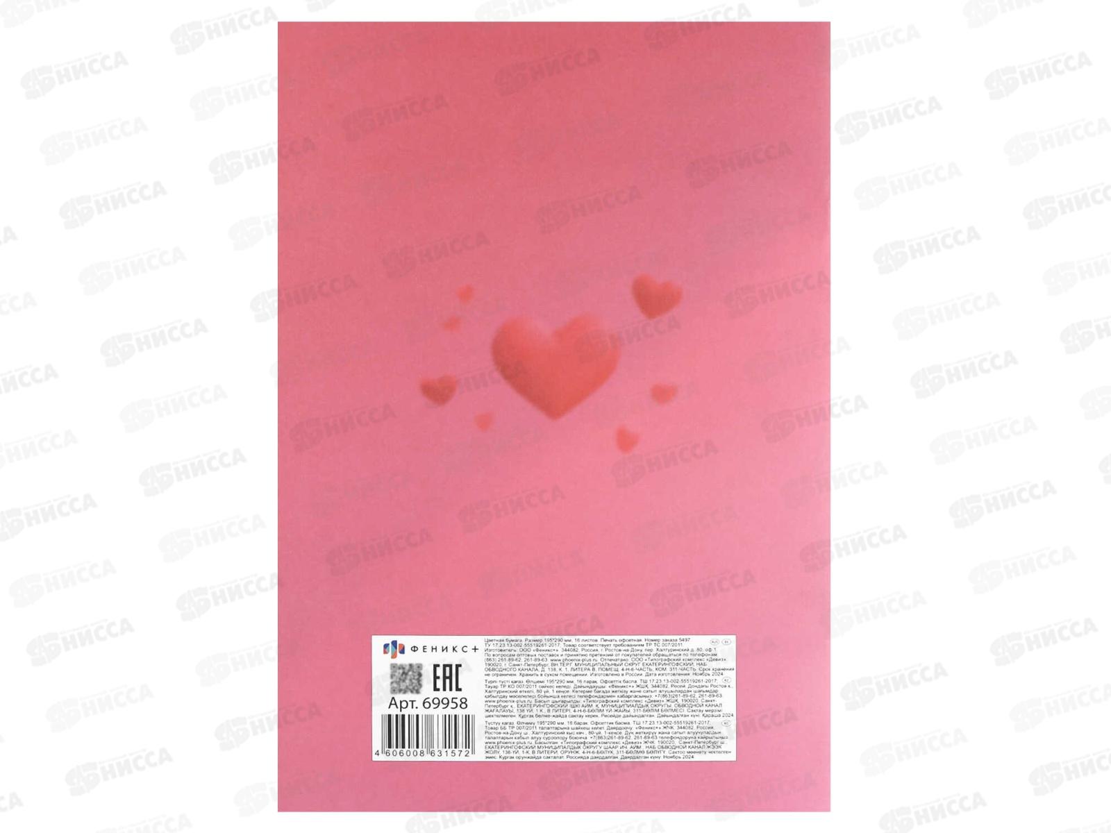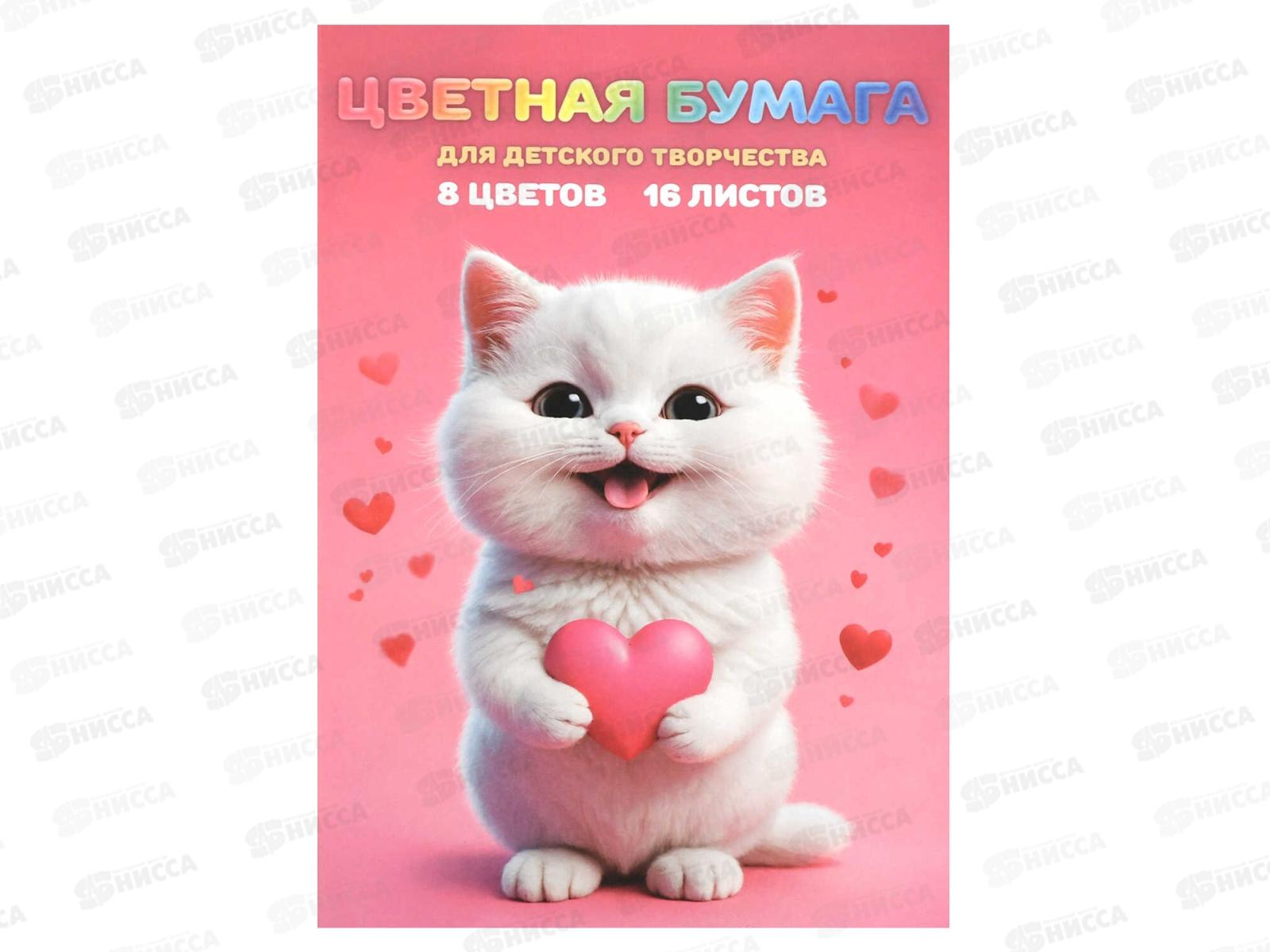 Цветная бум. 16л 8цв А4 ФЕН Котенок с сердечком 69958 *50