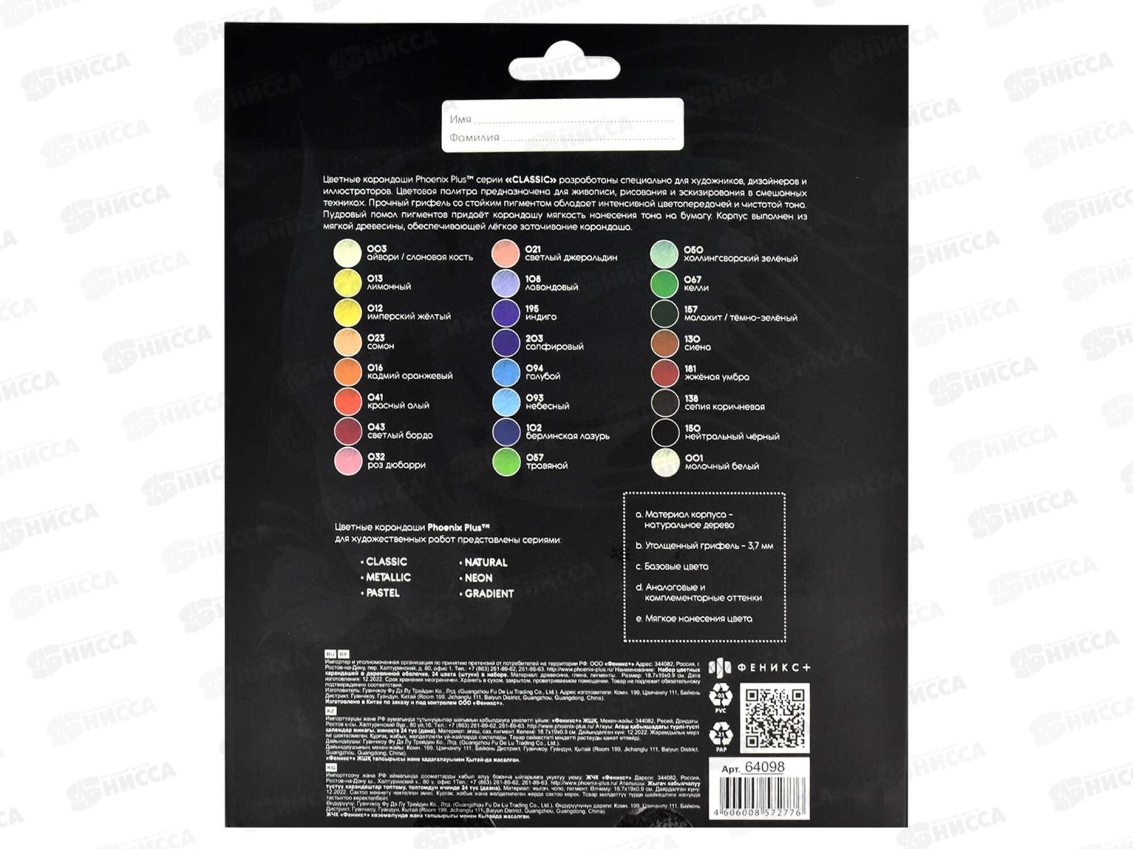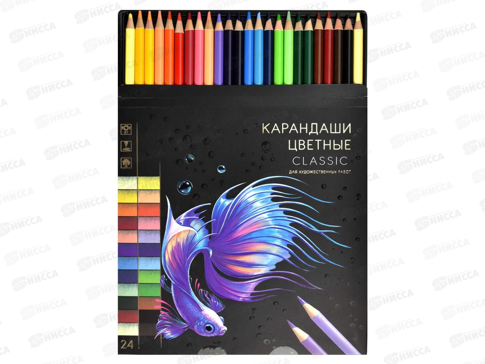 Карандаши 24цв ФЕН Классик, дерев.кругл. к/у, 64098 *24/240