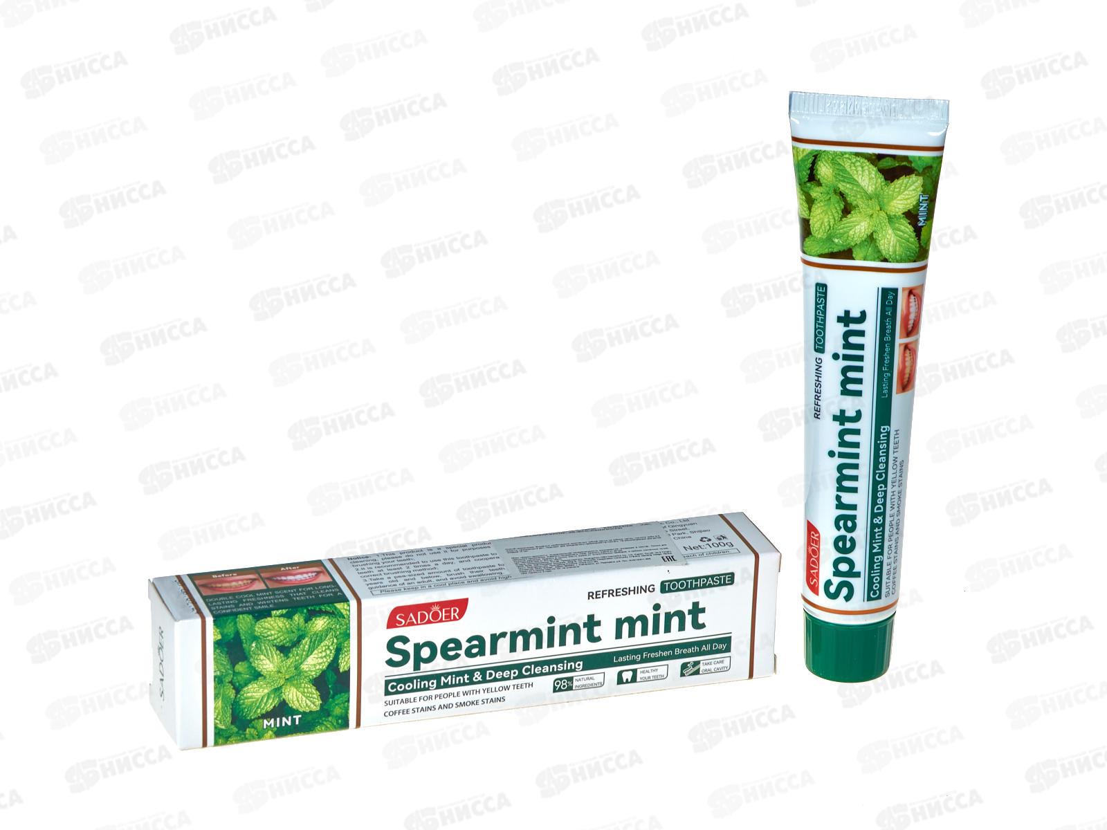 Зубная паста с мятой освежающая Spearmint mint, 100г глубоко очистит межзубные промежутки, мягко удалит остатки пищи и желтизну на зубах. Не содержит фтор. Состав: CALCIUM CARBONATE, WATER,SORBITOL, PEG-8,SODIUM LAURYL SULFATE, CELLULOSE GUM, HYDRATED SILICA, FLAVOR, SODIUM SACCHARIN, METHYLPARABEN, PROPYLPARABEN, MENTHOL.