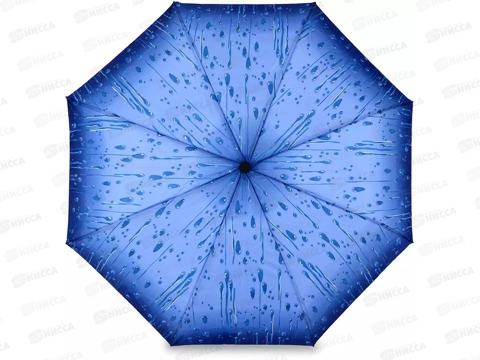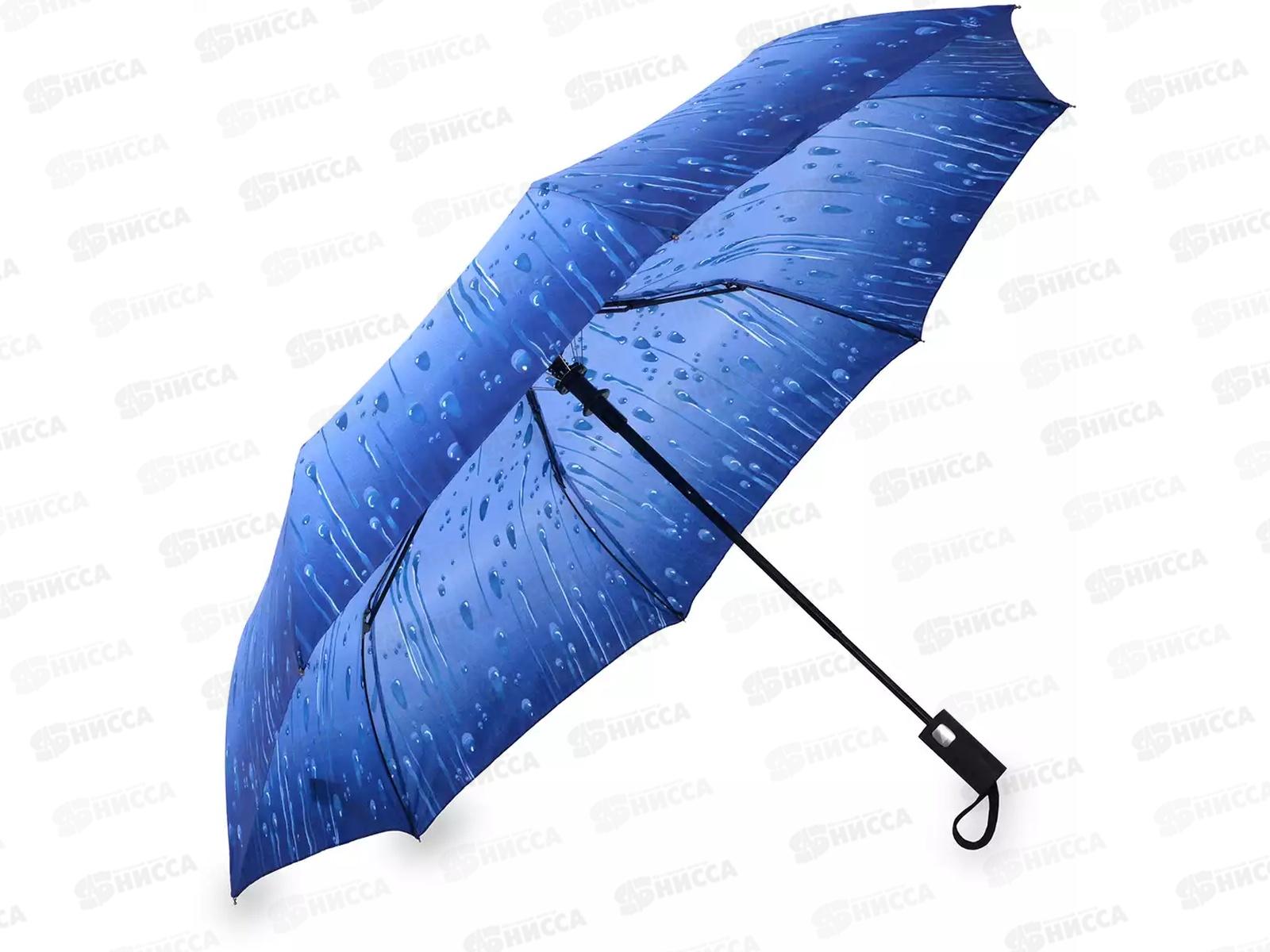 Зонт взрослый голубой с каплями дождя 3508S-1 в пакете, 448058