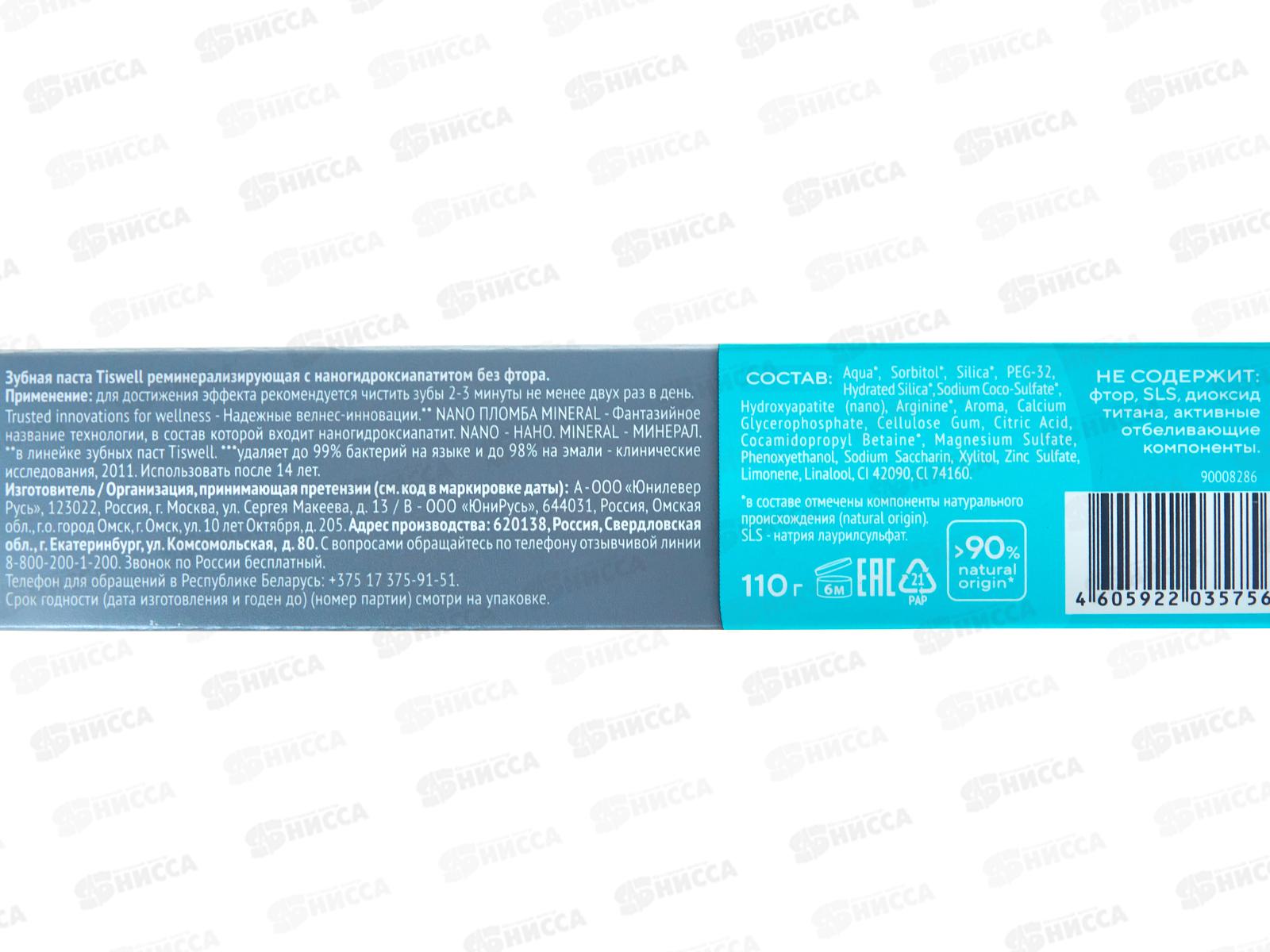 Tiswell зубная паста 110гр Nano Пломба Mineral Реминерализующая без фтора *9