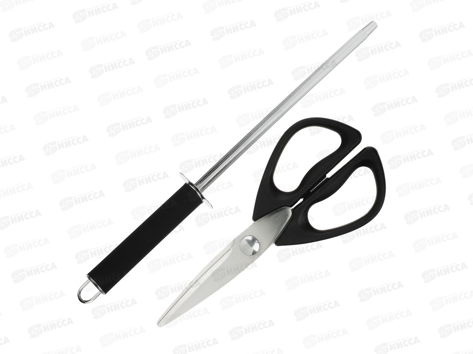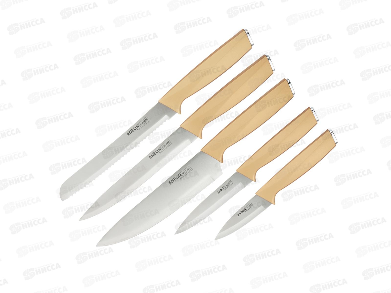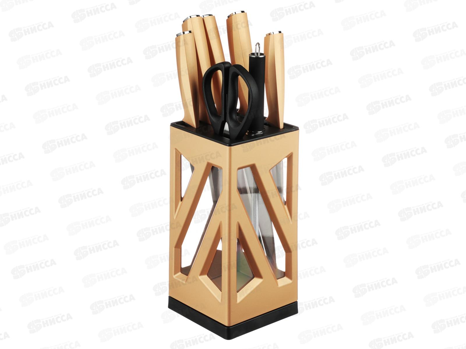 Набор кухонных ножей SATOSHI «Анбон» из 7 предметов на вращающейся подставке. Нержавеющая сталь не подвержена коррозии, имеет антибактериальное покрытие, а также антиналипающее покрытие, что делает процесс нарезки более комфортным и быстрым. Эргономичные рукоятки не выскальзывают из рук и обеспечивают надежный хват. Состав набора: 20 см шеф нож, 20 см нож для нарезки, 20 см нож для хлеба, 12,7 см универсальный нож, 9 см нож для чистки овощей и фруктов, мусат для заточки, ножницы.