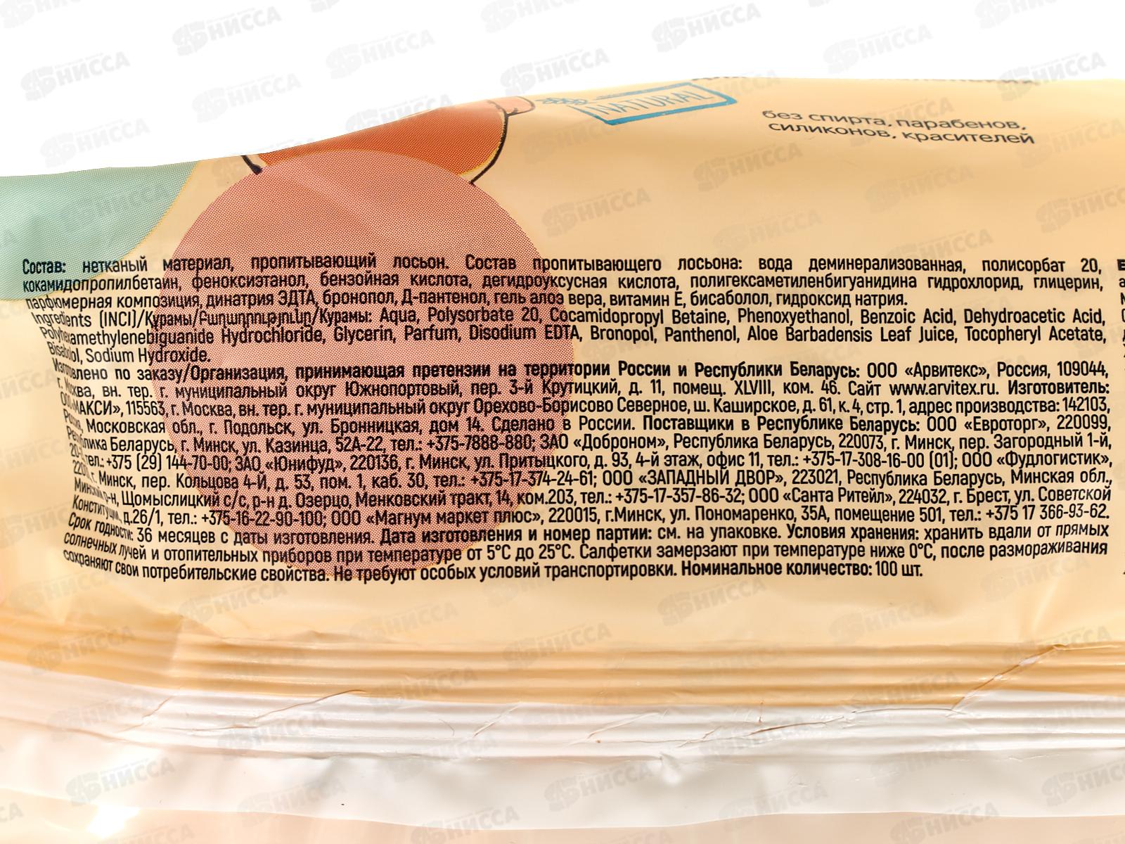 Состав пропитывающего лосьона: вода деминерализованная, полисарбат 20, кокамидопропилбетаин, феноксиэтанол, бензойная кислота, дегидроуксусная кислота, полигексаметиленбигуанидина гидрохлорид, глицерин, отдушка, динатрия ЭДТА, бронопол, д-пантенол, гель алоэ вера, витамин Е, бисаболол, гидроксид натрия.