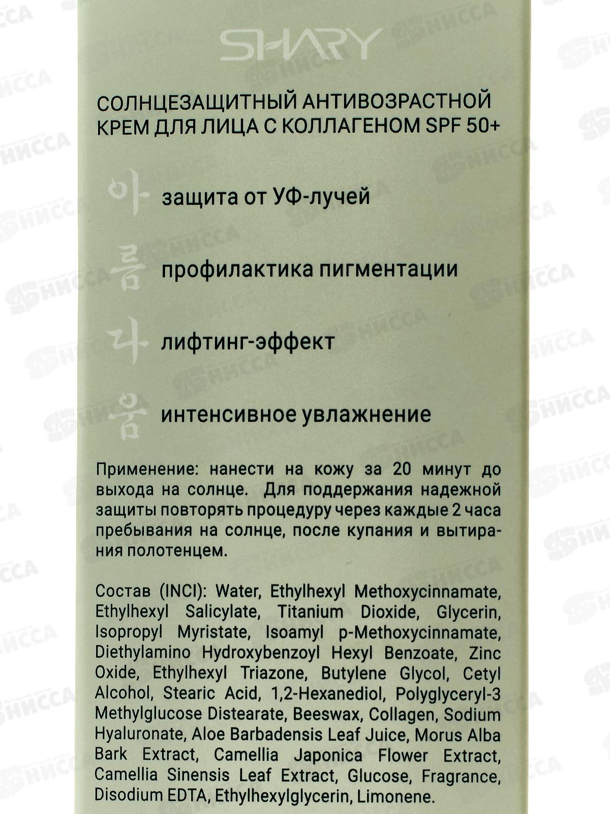 Shary Солнцезащитный антивозрастной крем с коллагеном SPF 50+ 50г