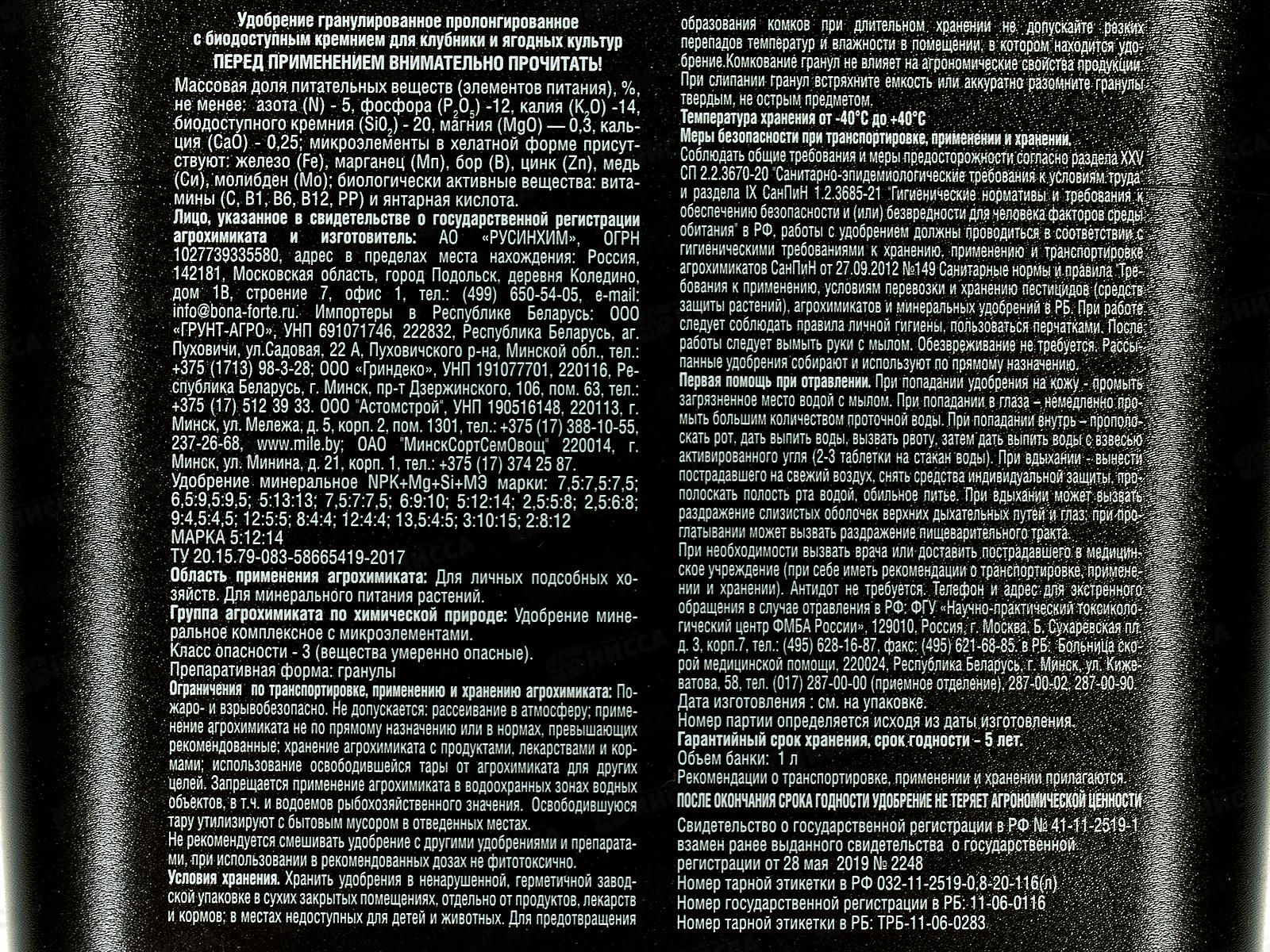 Bona Forte Удобрение гран для клуб и ягод с биодоступным кремн 1л *12