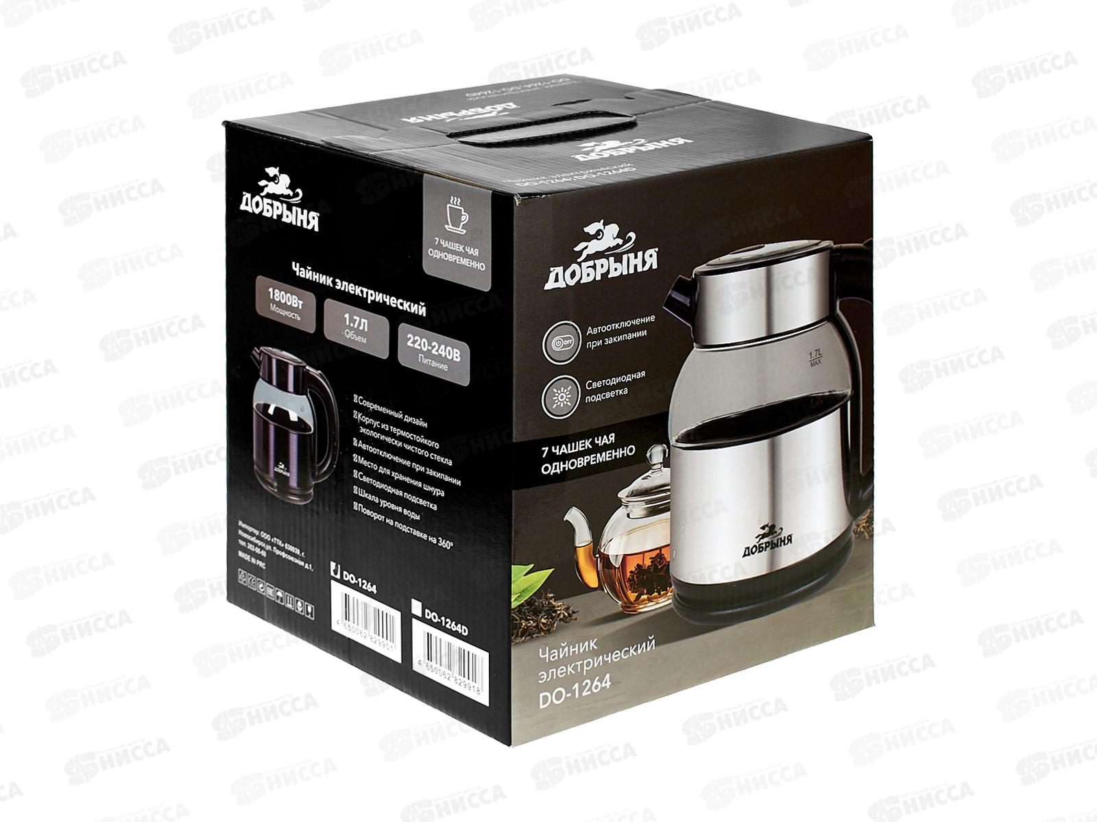 Чайник электрический DO-1264 1800Вт 1,7л стекло со стальн вставками