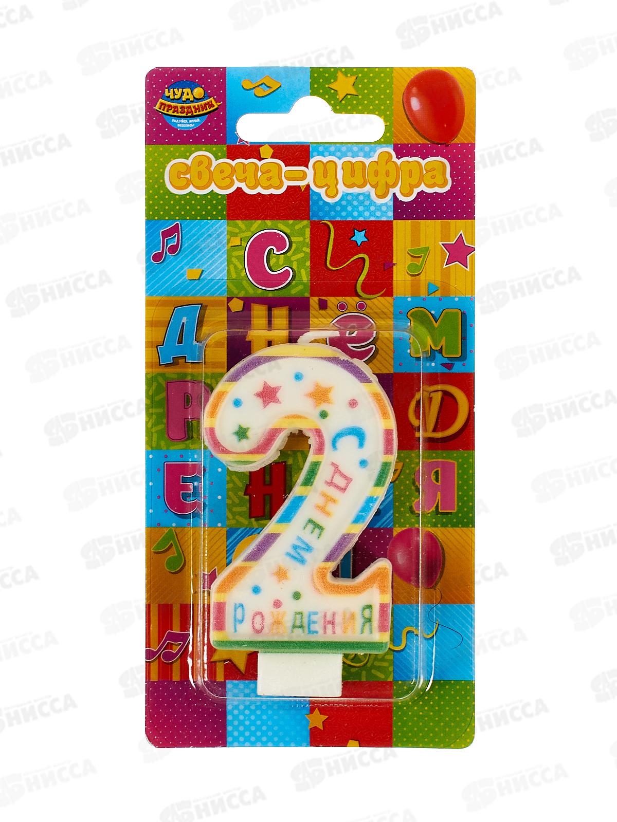 Свеча для торта цифра "2" День рождения СС-110190-НВ4 Чудо праздник*12