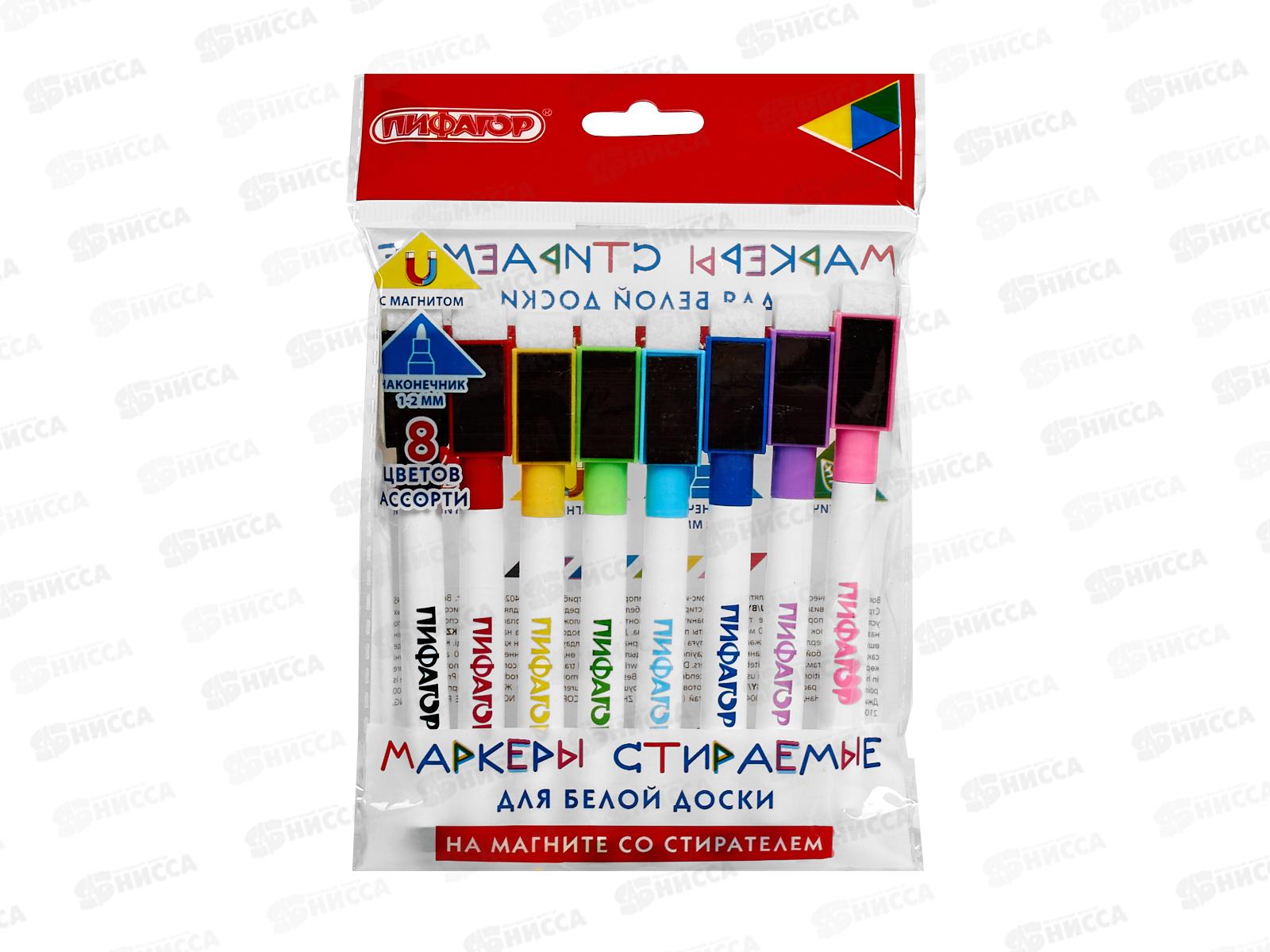 Маркеры д/доски Пифагор 8цв., на магните со стират. 152562 *48