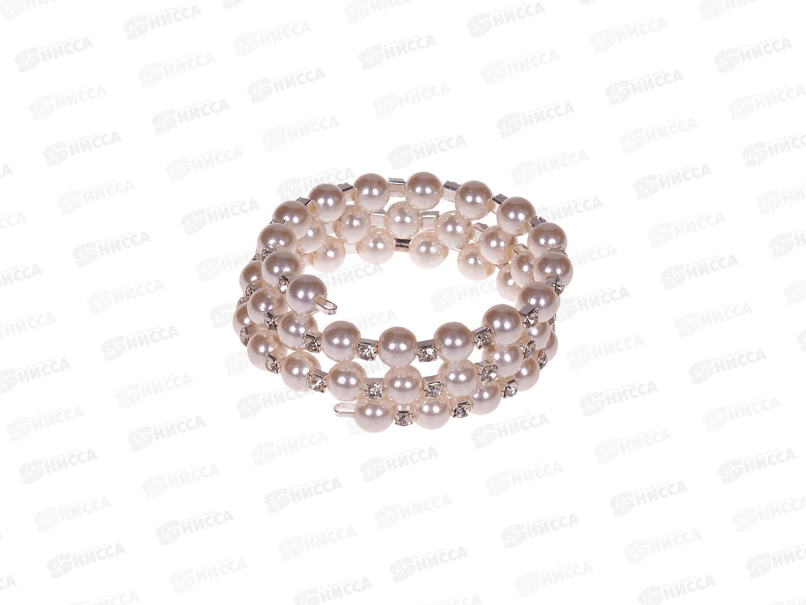 Браслет-спираль 3 ряда жемчуг стразы №1332