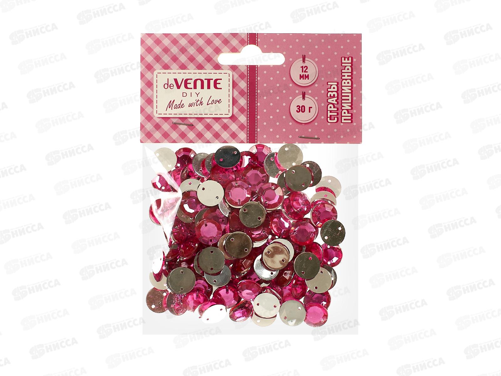 Стразы пришивные deVente Круглые акрил. 12мм 30г розовые 88004323 *12