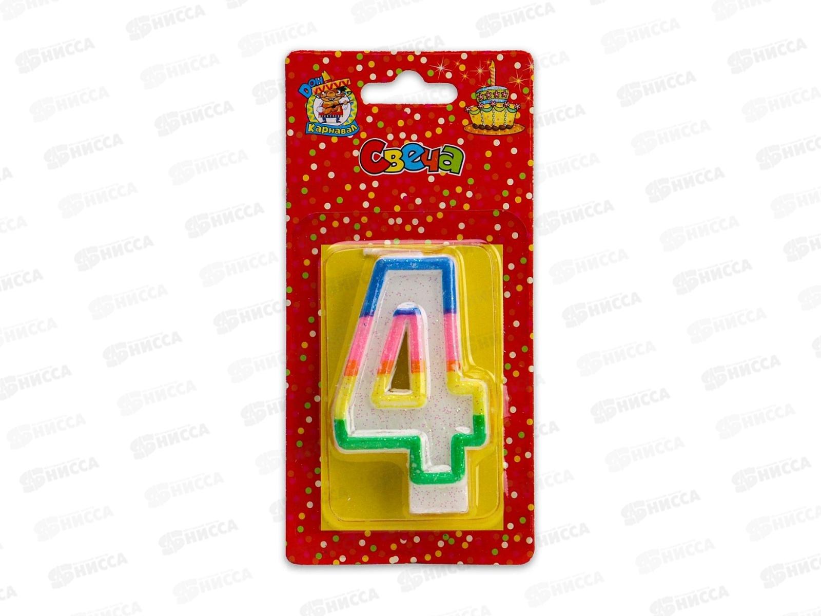 Свеча для торта с окантовкой с блестками Цифра 4, С-2419