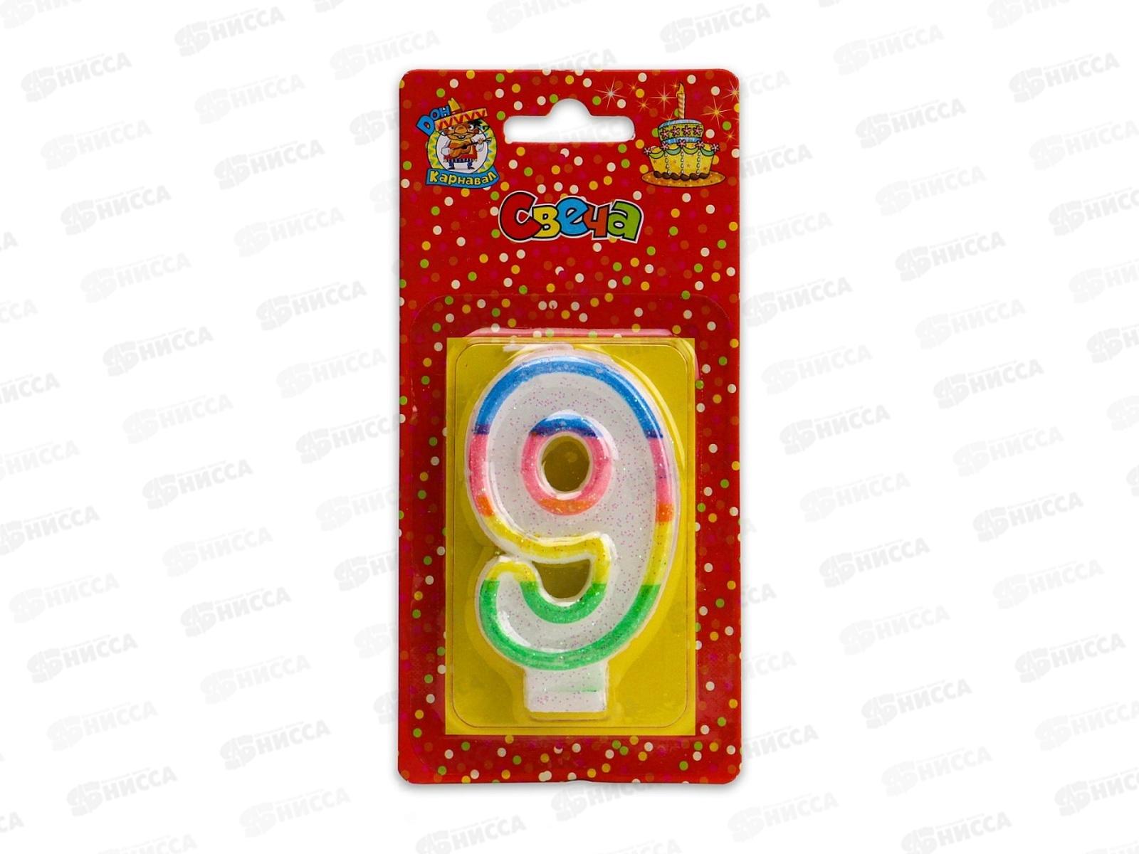 Свеча для торта с окантовкой с блестками Цифра 9, С-2424