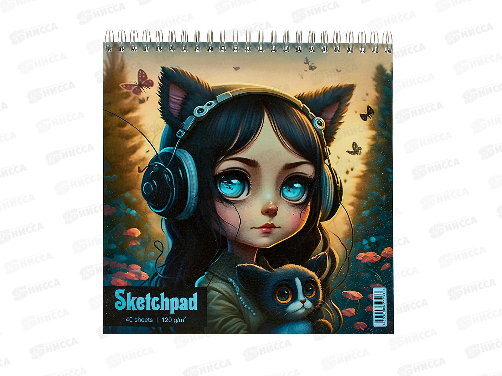 Скетчпад АКАД 40л Девочка с котенком 195*195мм 14299-ЕАС *24