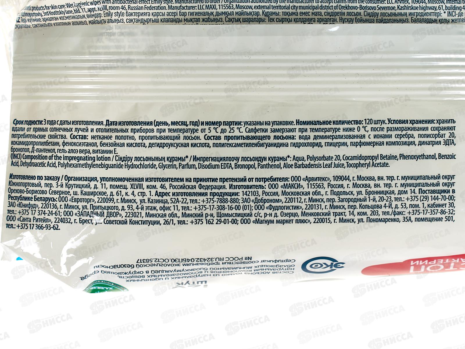 Emily Style Влажные салфетки 120шт Лайт Детские 0+ с крышкой С0008179
