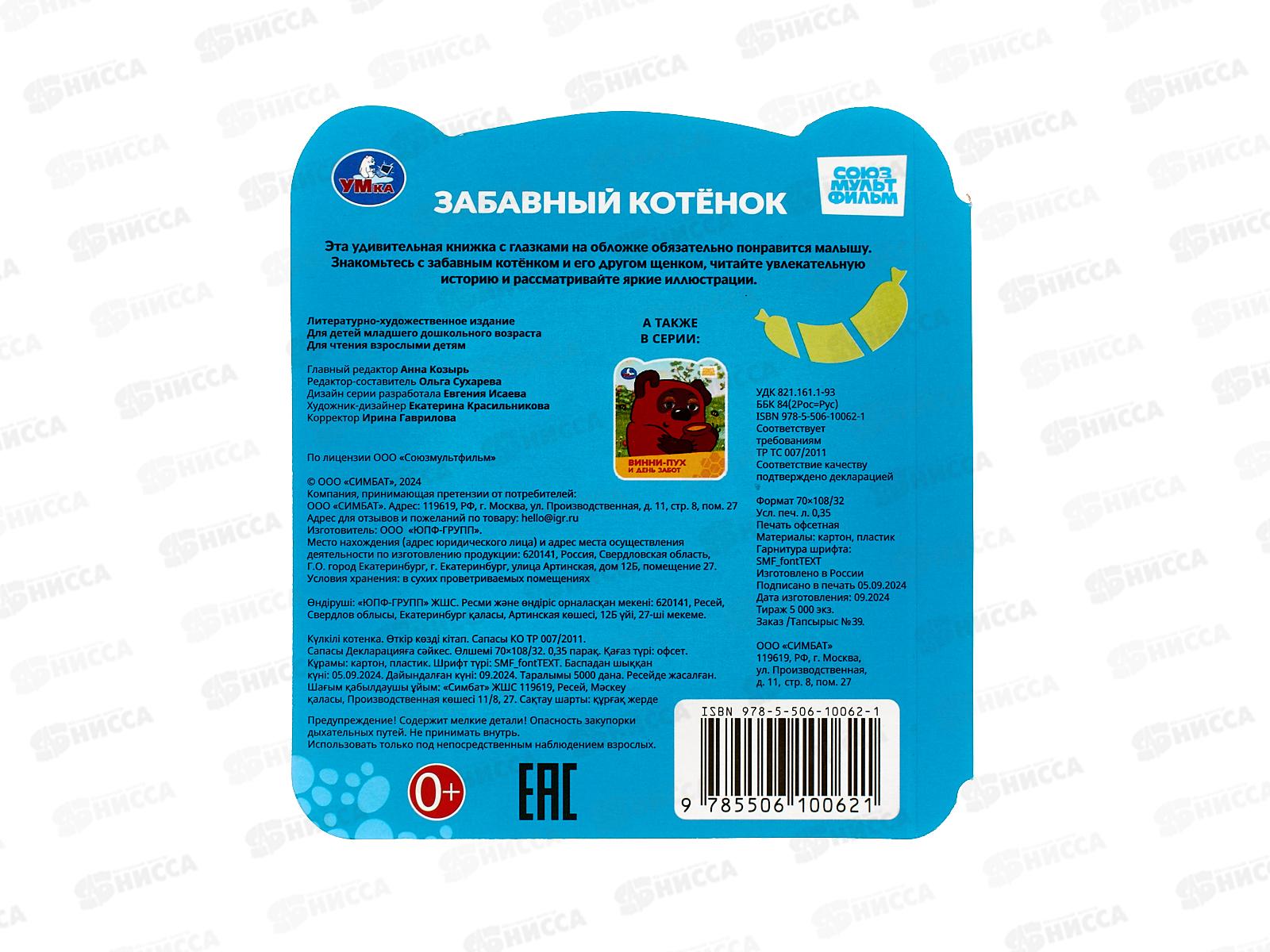 Книга "УМКА" 10062-1, с глазками. Забавный котёнок. 8стр., 120х130мм