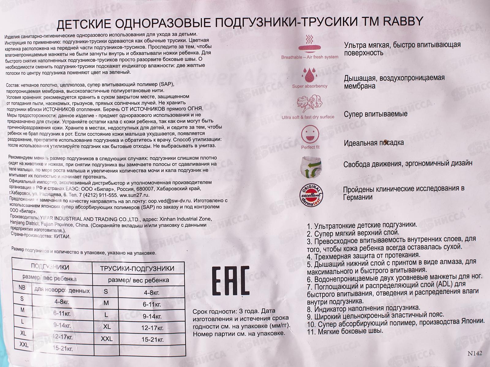 RABBY Подгузники-трусики детские 12-17кг XL 52шт *4 R12-XL-52