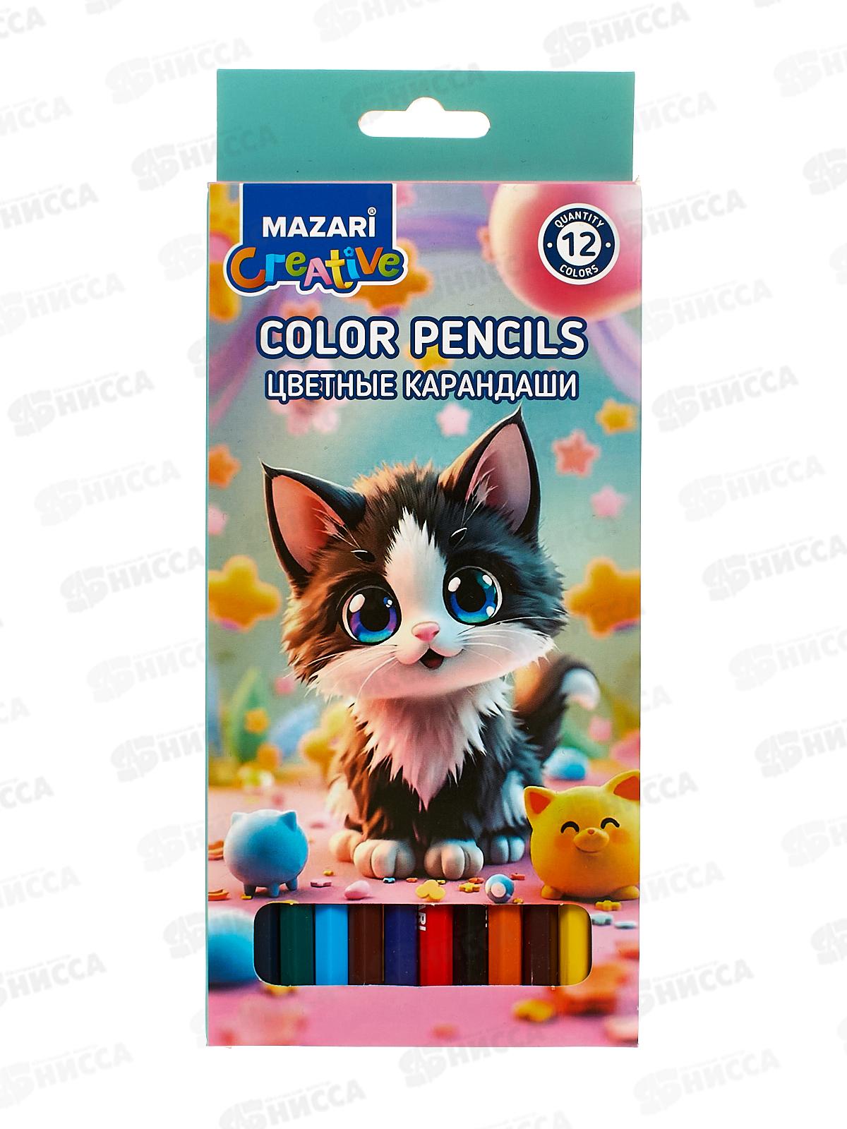 Карандаши 12цв MAZARI Котик дер., гриф.2.65мм, к/у, M-7085-12 *12/240