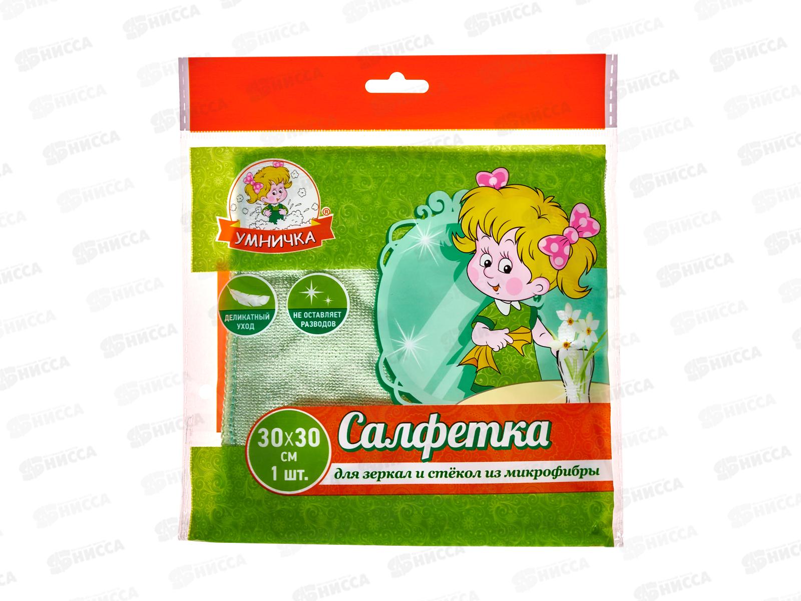 Салфетка д/стекла "Умничка" микрофибра 30*30см 1шт *60 МП