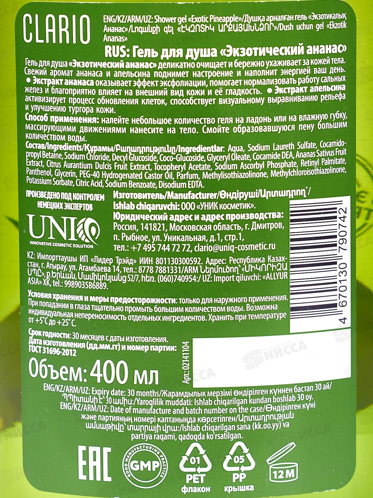 Clario Гель для душа Экзотический Ананас 400мл *5