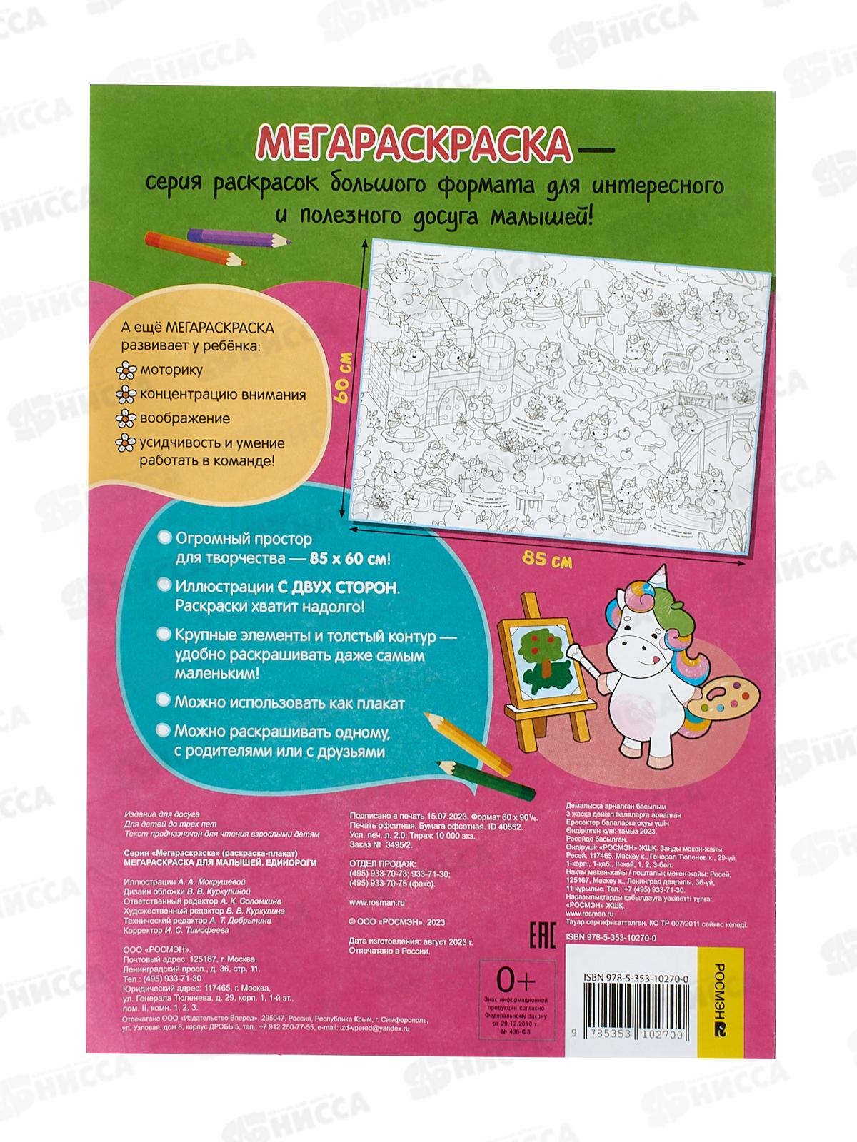 МЕГАРАСКРАСКА серия раскрасок большого формата для интересного и полезного досуга малышей!Огромный простор для творчества 85 х 60 см! Иллюстрации С ДВУХ СТОРОН. Раскраски хватит надолго! Крупные элементы и толстый контур удобно раскрашивать даже самым маленьким! Можно использовать как плакат. Можно раскрашивать одному, с родителями или с друзьями. А ещё МЕГАРАСКРАСКА развивает у ребёнка: моторику, концентрацию внимания, воображение, усидчивость и умениеработать в команде!