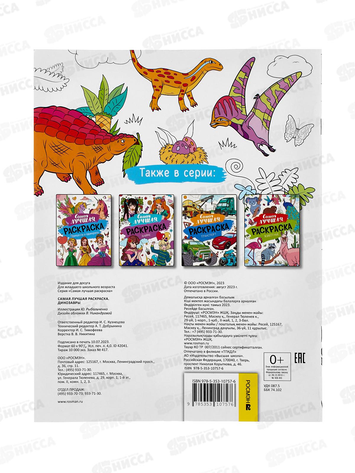 Раскраска Росмэн самая лучшая Динозавры. 42041 *20