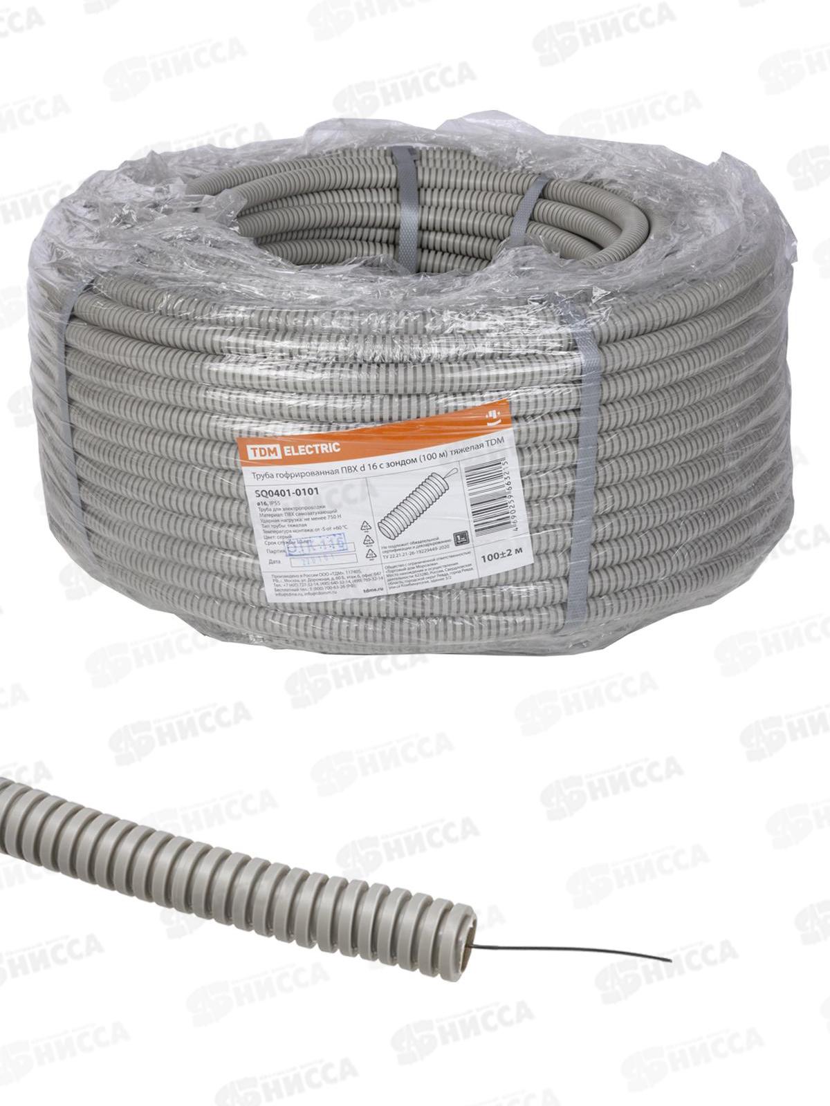 Труба гофрированная ПВХ d16 с зондом (100м) тяжелая TDM, 0101 *100